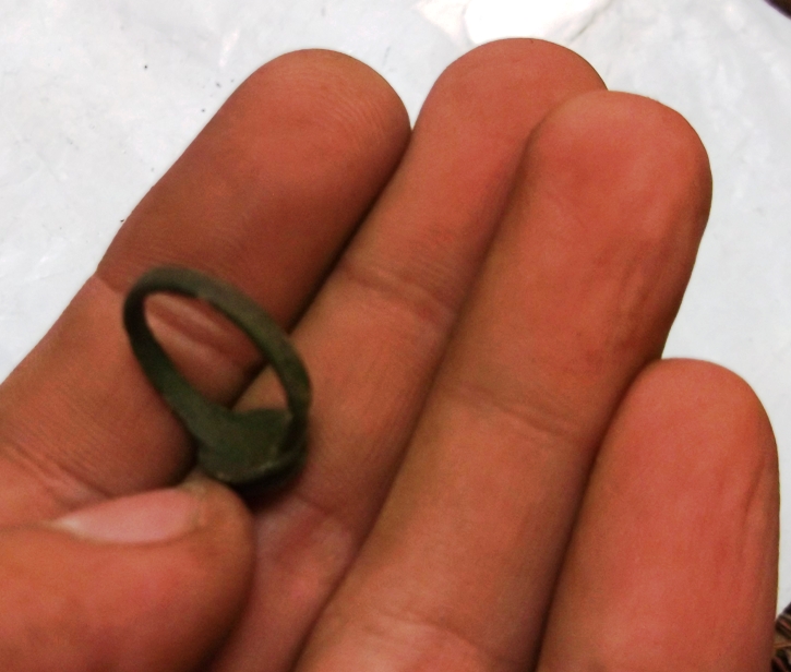 Выкопали вот такое колечко. Материал - латунь или бронза, короче говоря медный сплав. Интересует каких оно годов? Старинное, дореволюционное или современная бижутерия? Буду благодарен за любые предположения