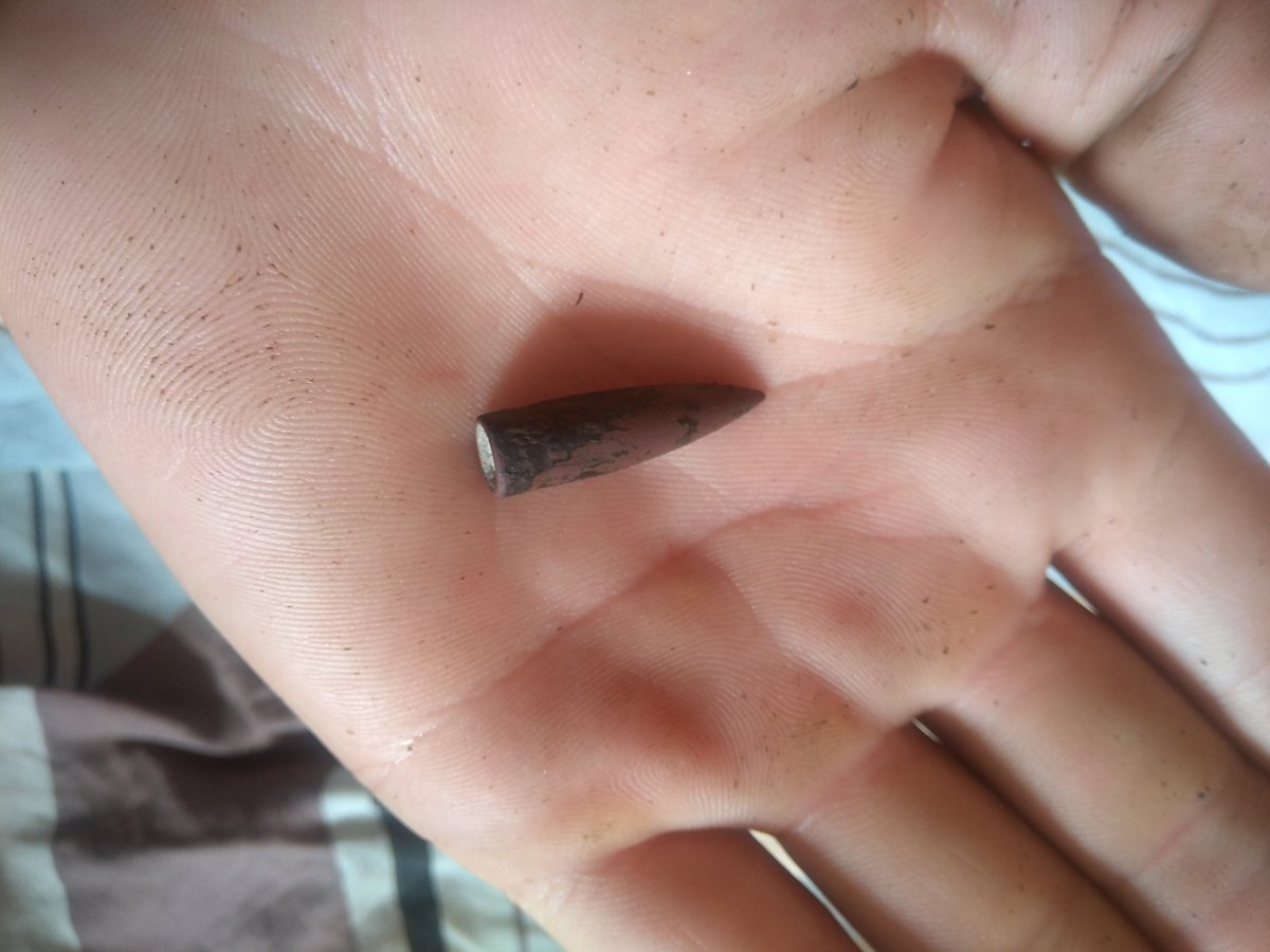 Народ, насколько я понимаю это мосинка. А внутри она как? То дальше ковырять не стал, что там белое твердое. И по железяке - частью копья может быть?