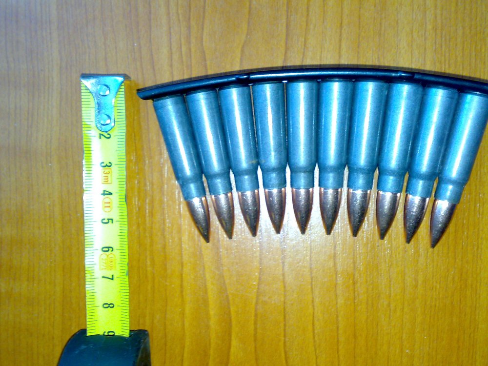 Приветствую! К сожалению не обладаю двумя планками с СКС-овкими патронами. По этому не могу померить....