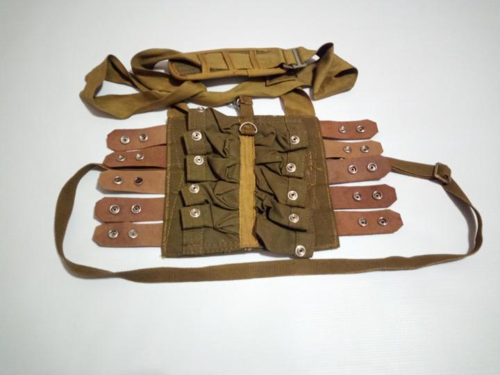 №1 - сумка ("подсумок") для переноски ВОГ-25 и ВОГ-25П (видно две кнопки для различных "размеров" ВОГов); №5 - к НСПУ. № 4 - "лифчик" он же пояс А - см. здесь https://mish-gunner.livejournal.com/4842.html если верить то такая модификация ("кнопки обычные") пошла с 1986 года