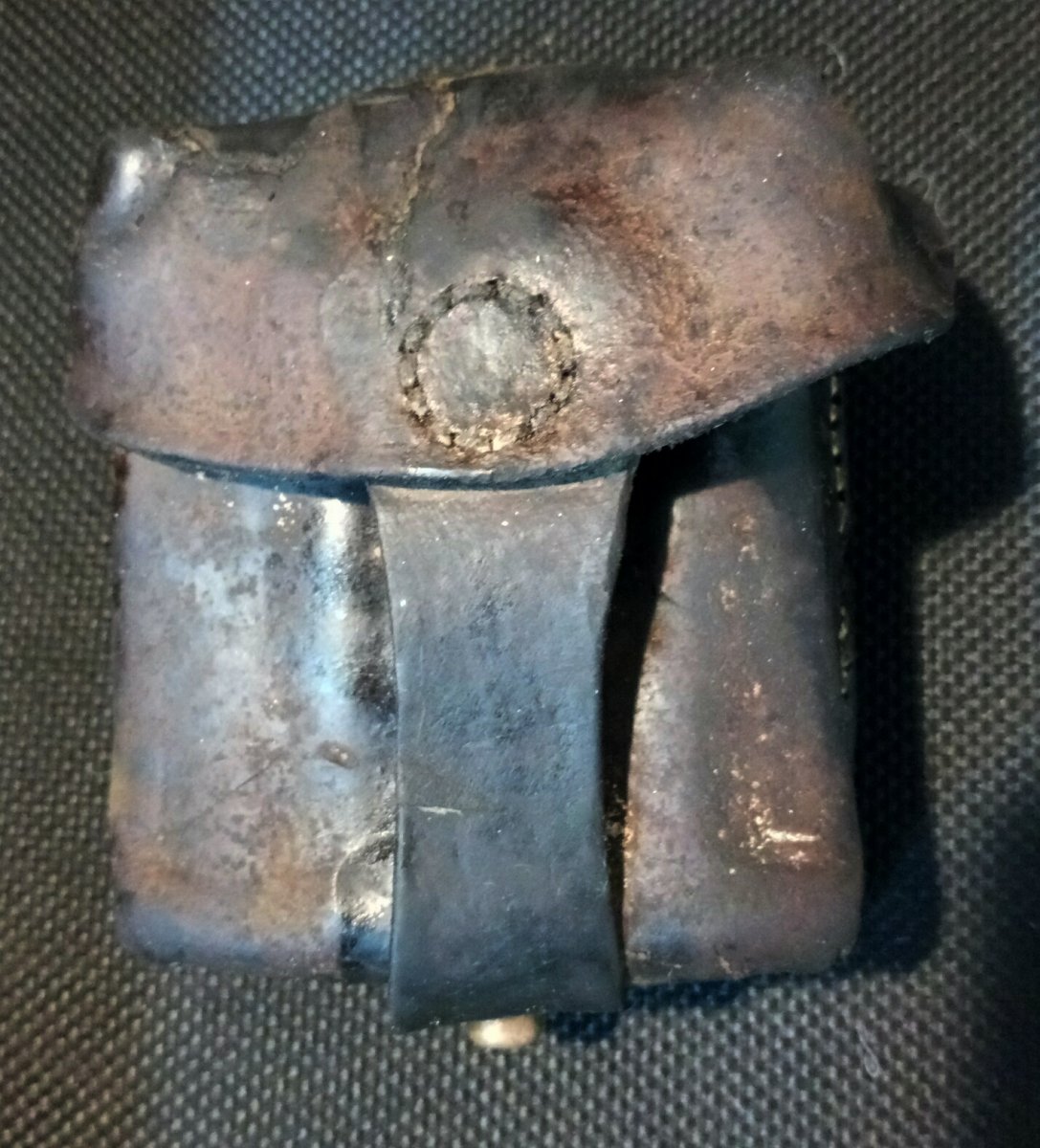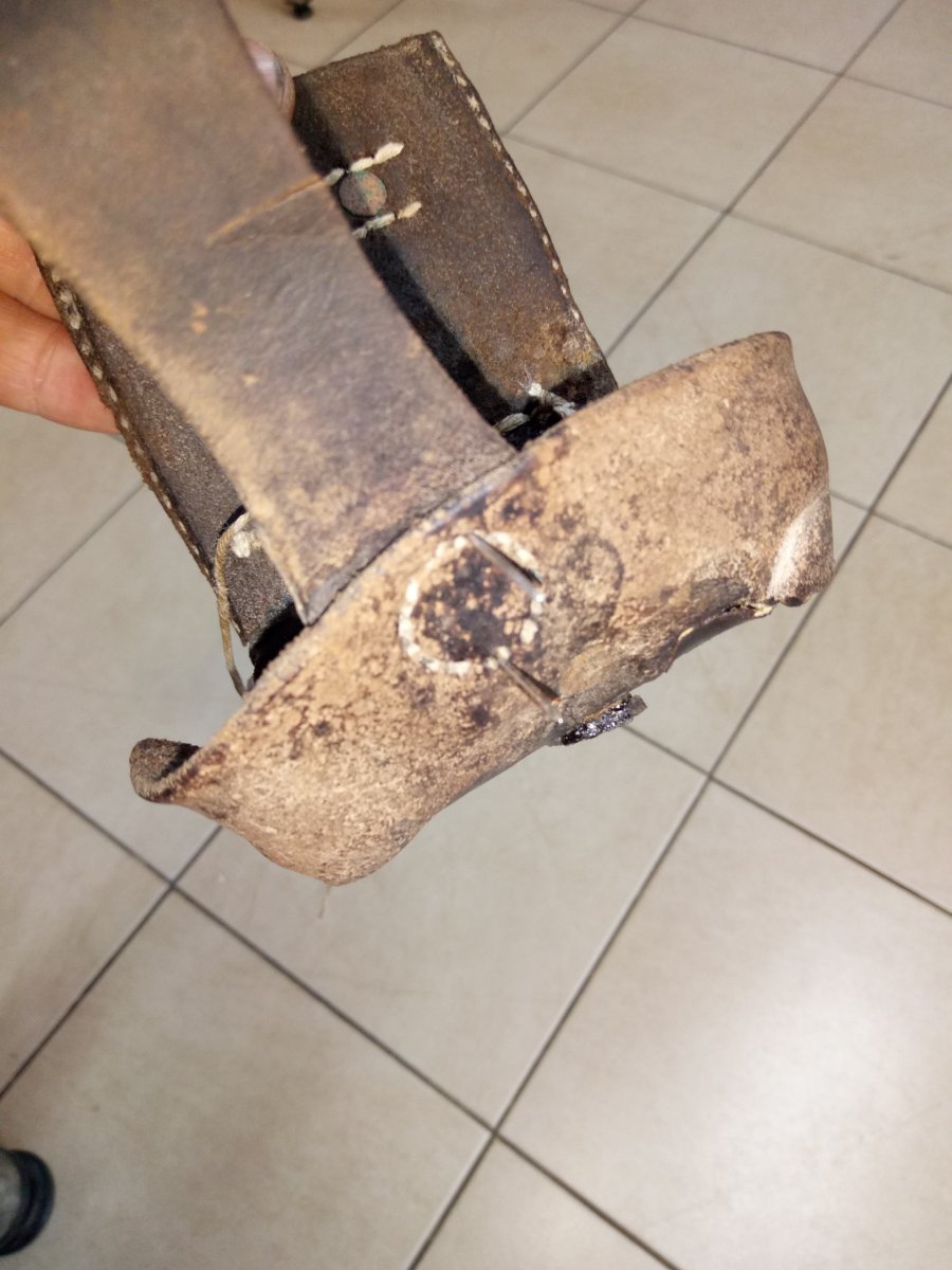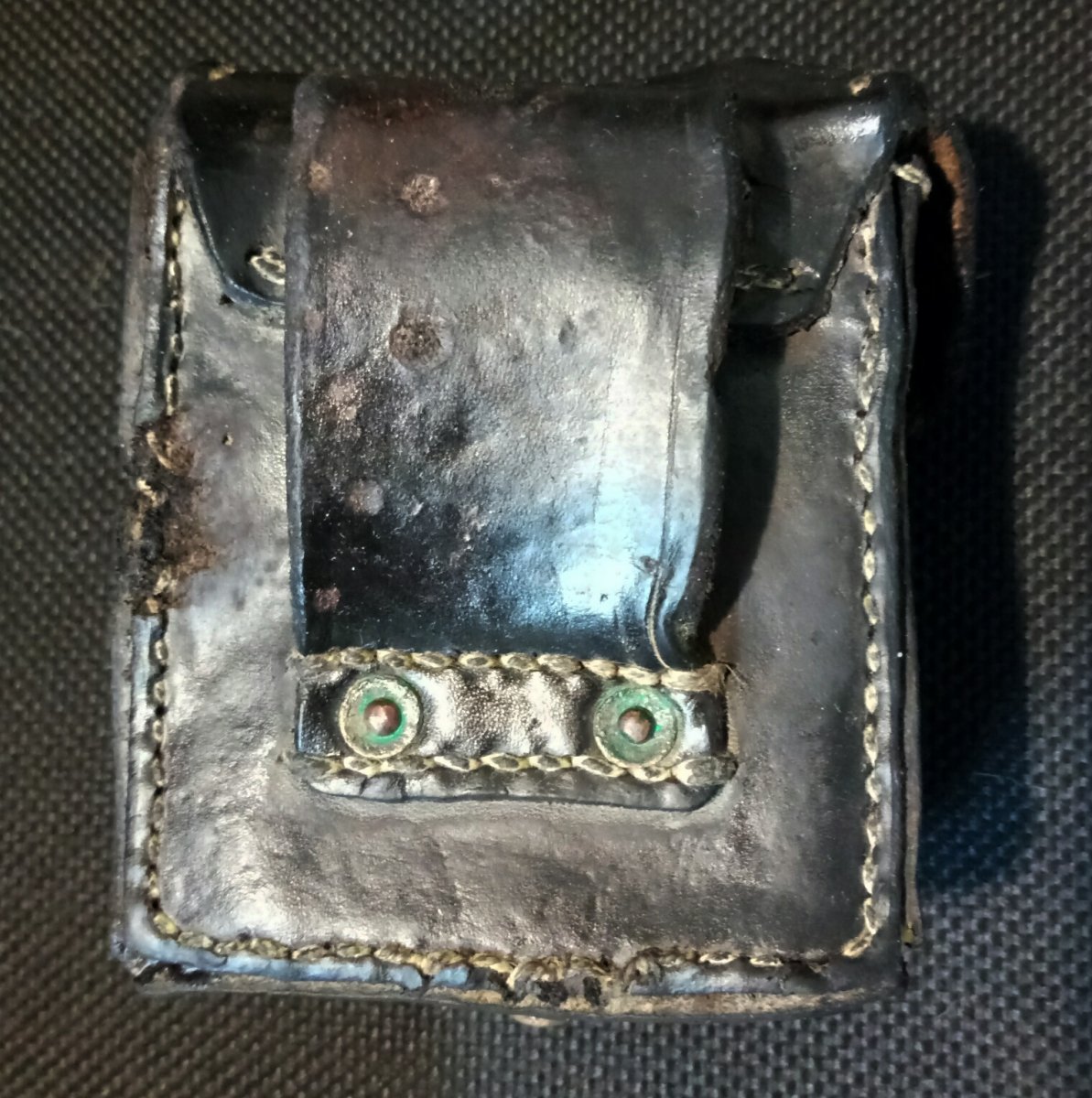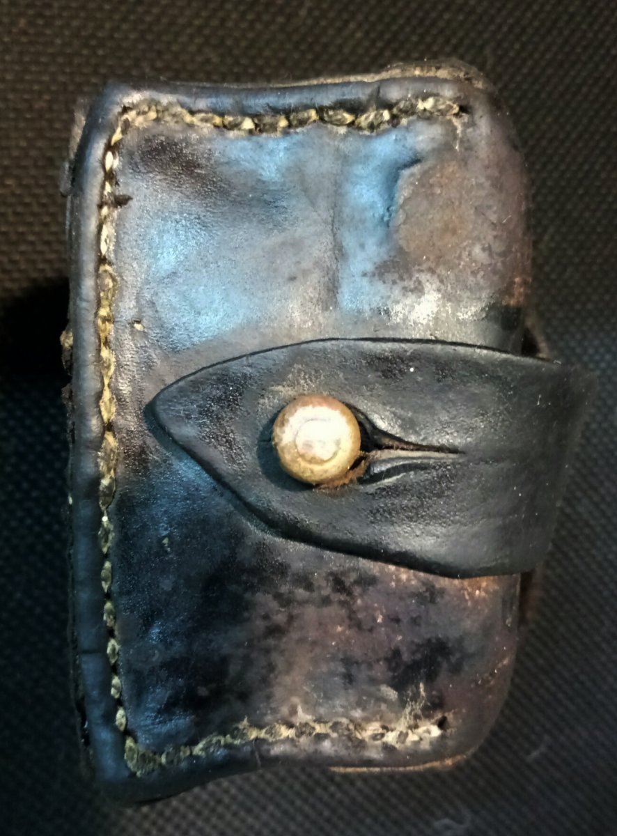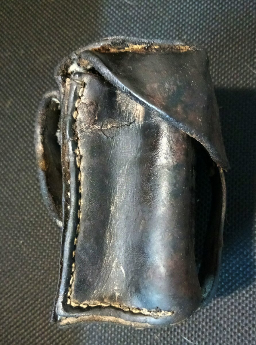 Всем добра! Представляю вниманию уважаемого сообщества очередную реставрацию копаной кож.снаряги. Подсумок поднят весной сего года, остальная кожа что была с ним в труху, в полном смысле слова, он же, во всяком случае будучи вынутым из земли казался живиньким, однако позже выяснилось что состояние кожи оставляет желать много лучшего.....Однако глаза бояться, а руки делают. Таким он был изначально, немыт.