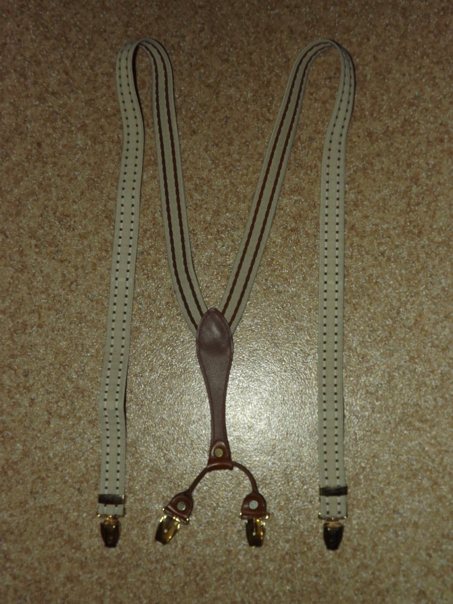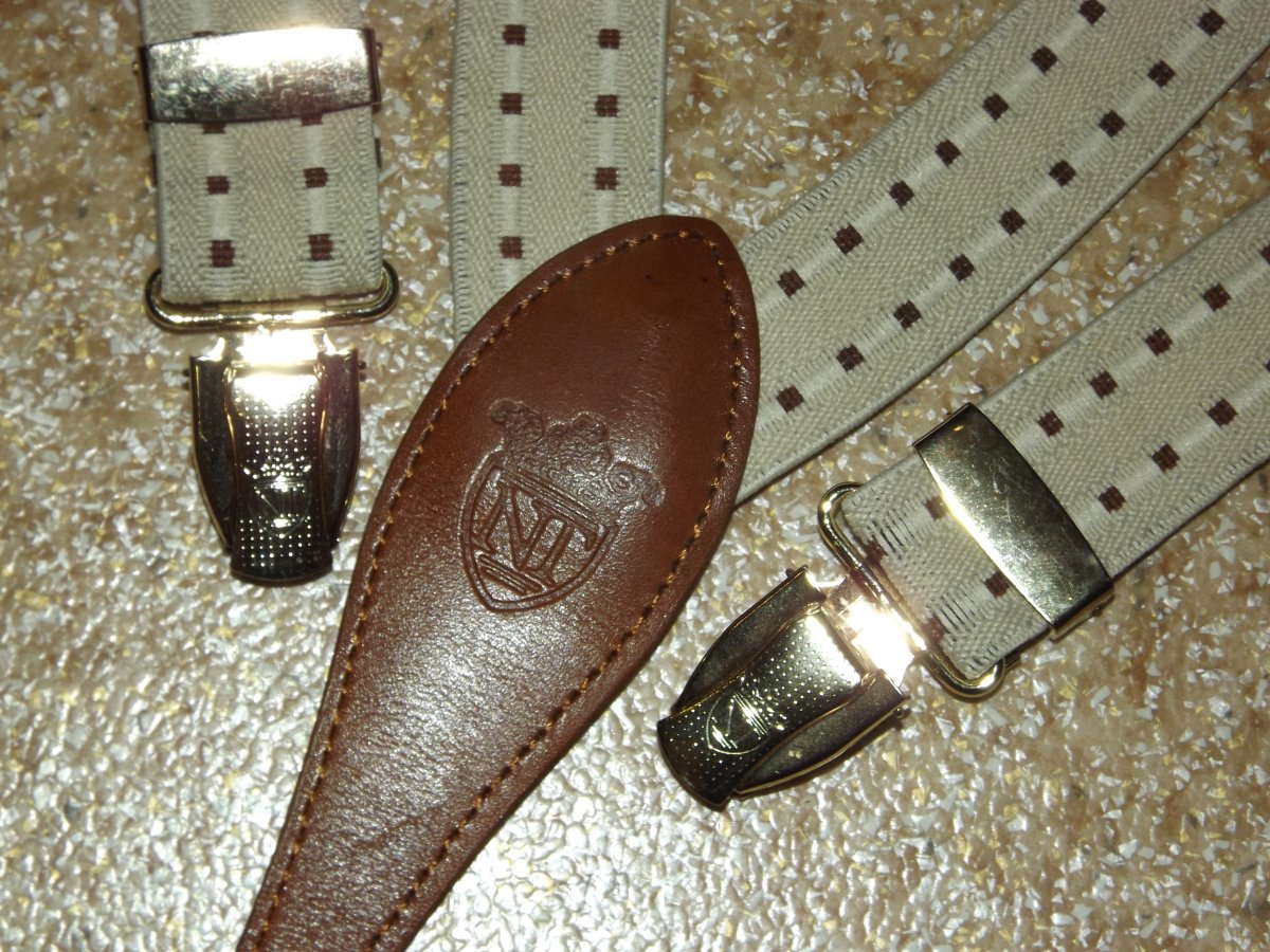 Лот №25. Подтяжки на клипсах NT, минимальное б/у, длина 102 см ( не растянуты), ширина- 2.5 см. кожаные вставки Цена- 130 грн Проданы