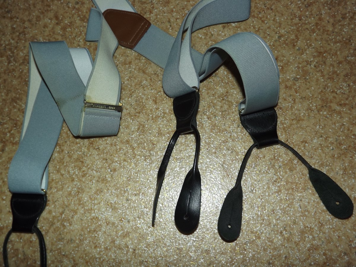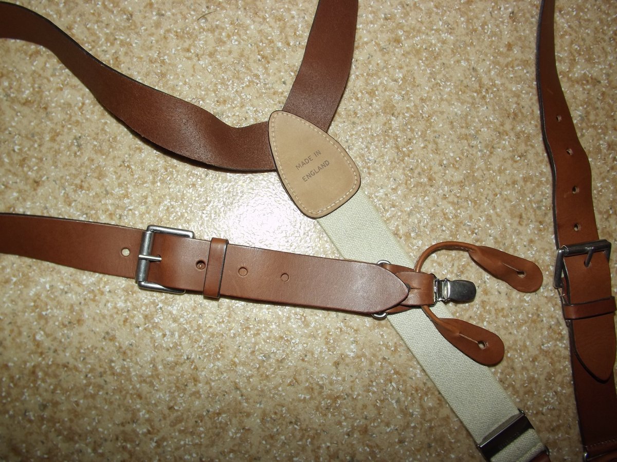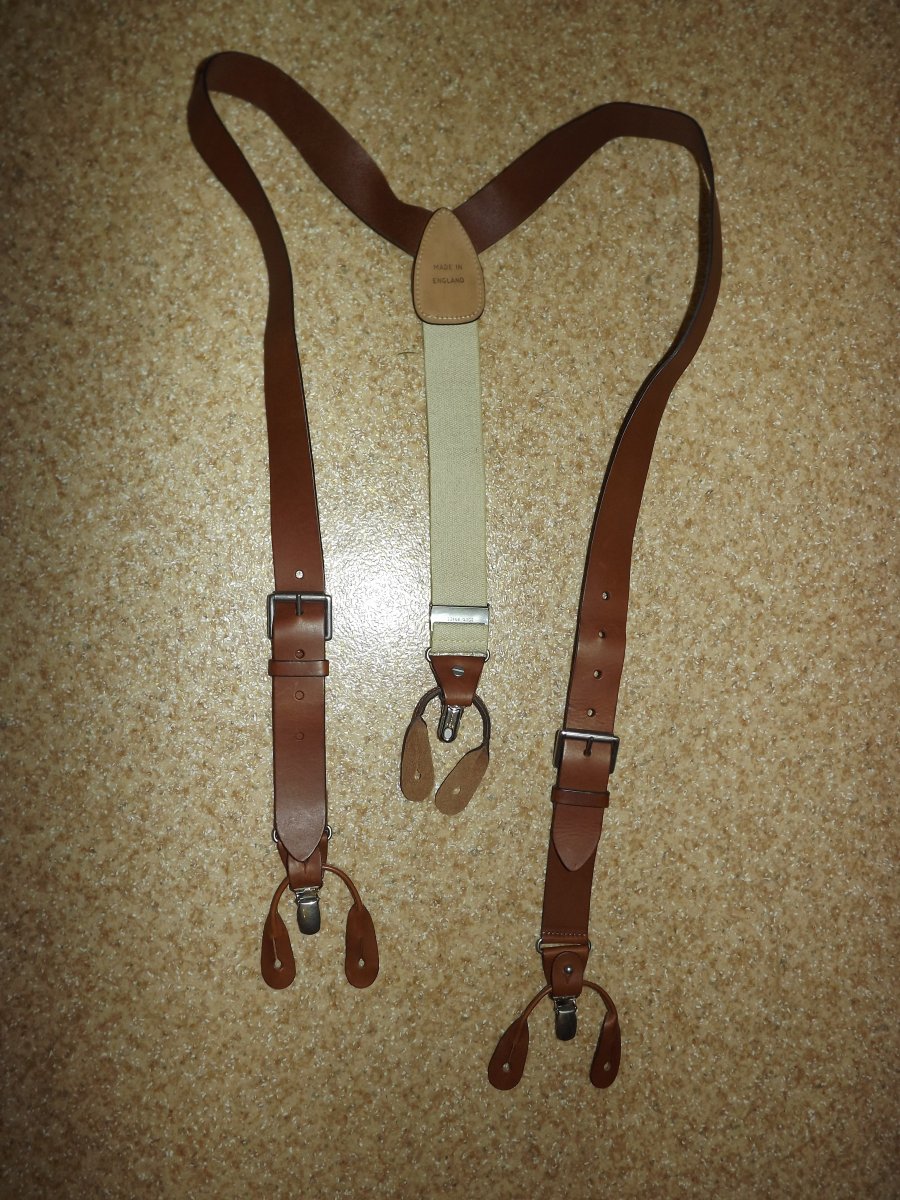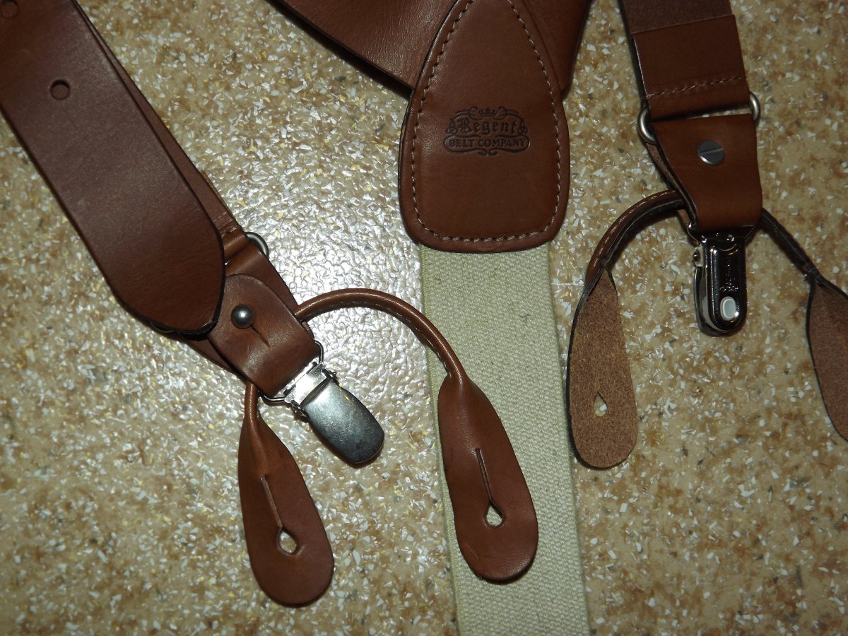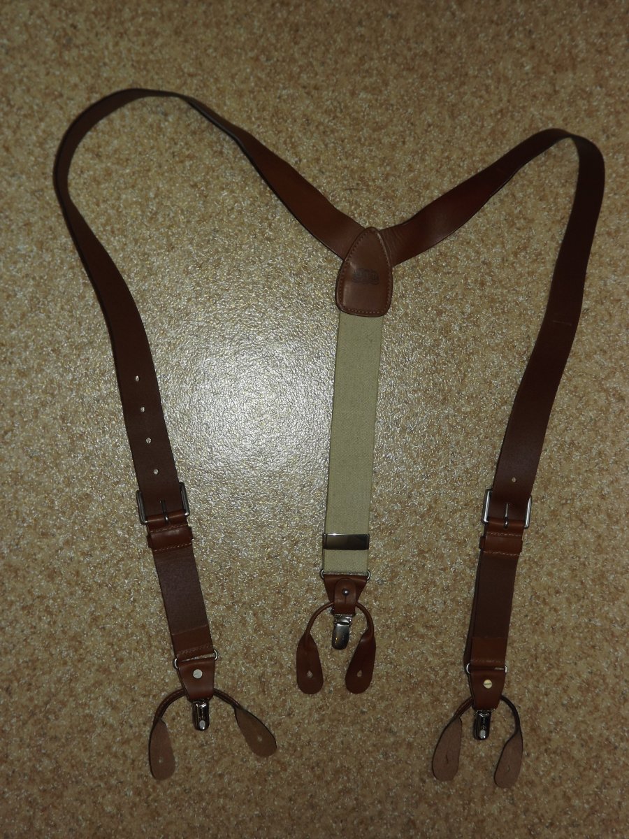 Лот №17. Кожаные подтяжки Regent Belt Company (Англия), новые. Можно носить как на клипсах так и на пуговицах ( лишние отстегивается). длина на клипсах 104см ( не растянуты), длина на пуговицы 111 см, ширина кожаных лямок 3 см , ширина резинки 3.5 см. Цена- 170 грн Проданы