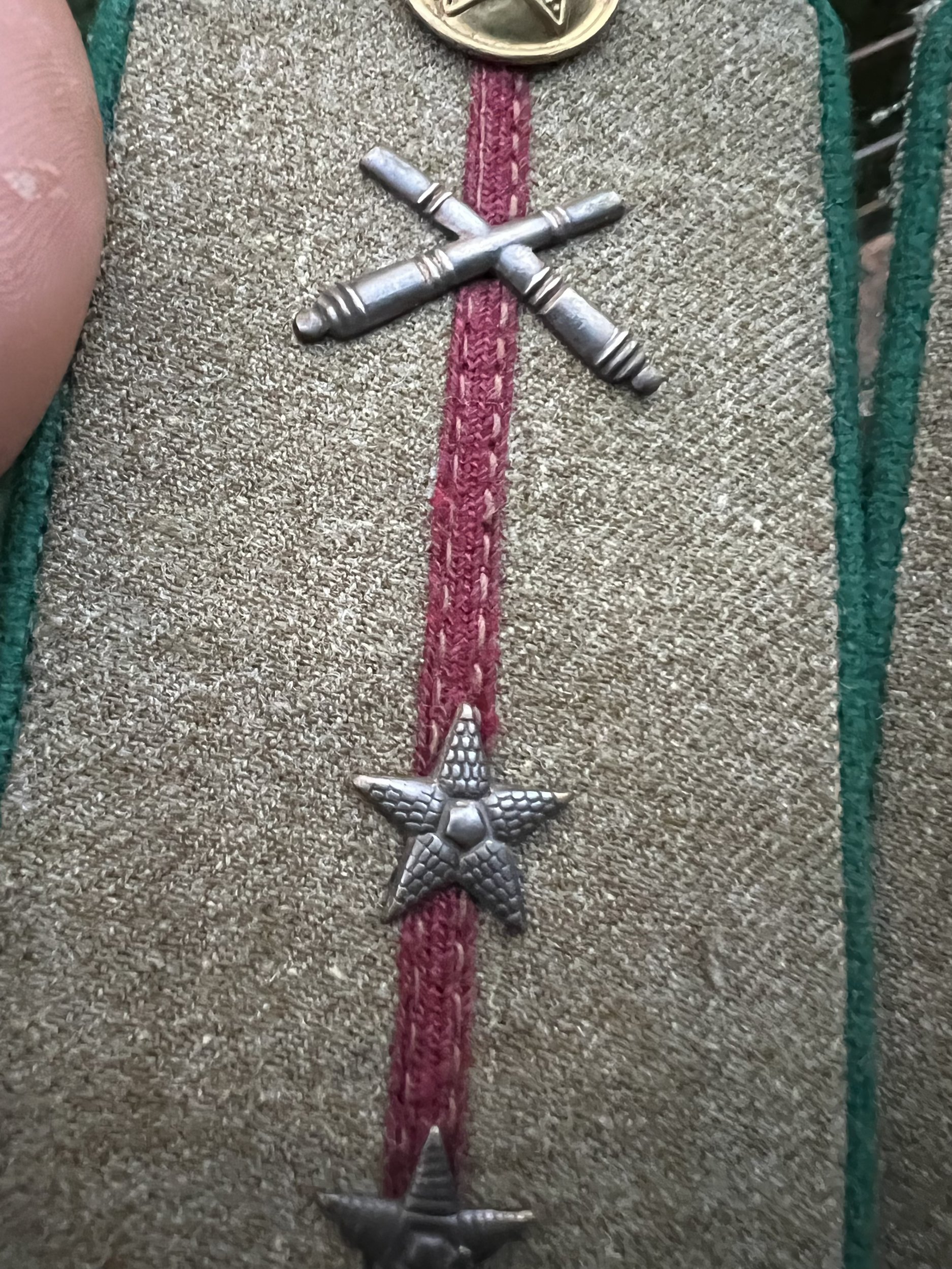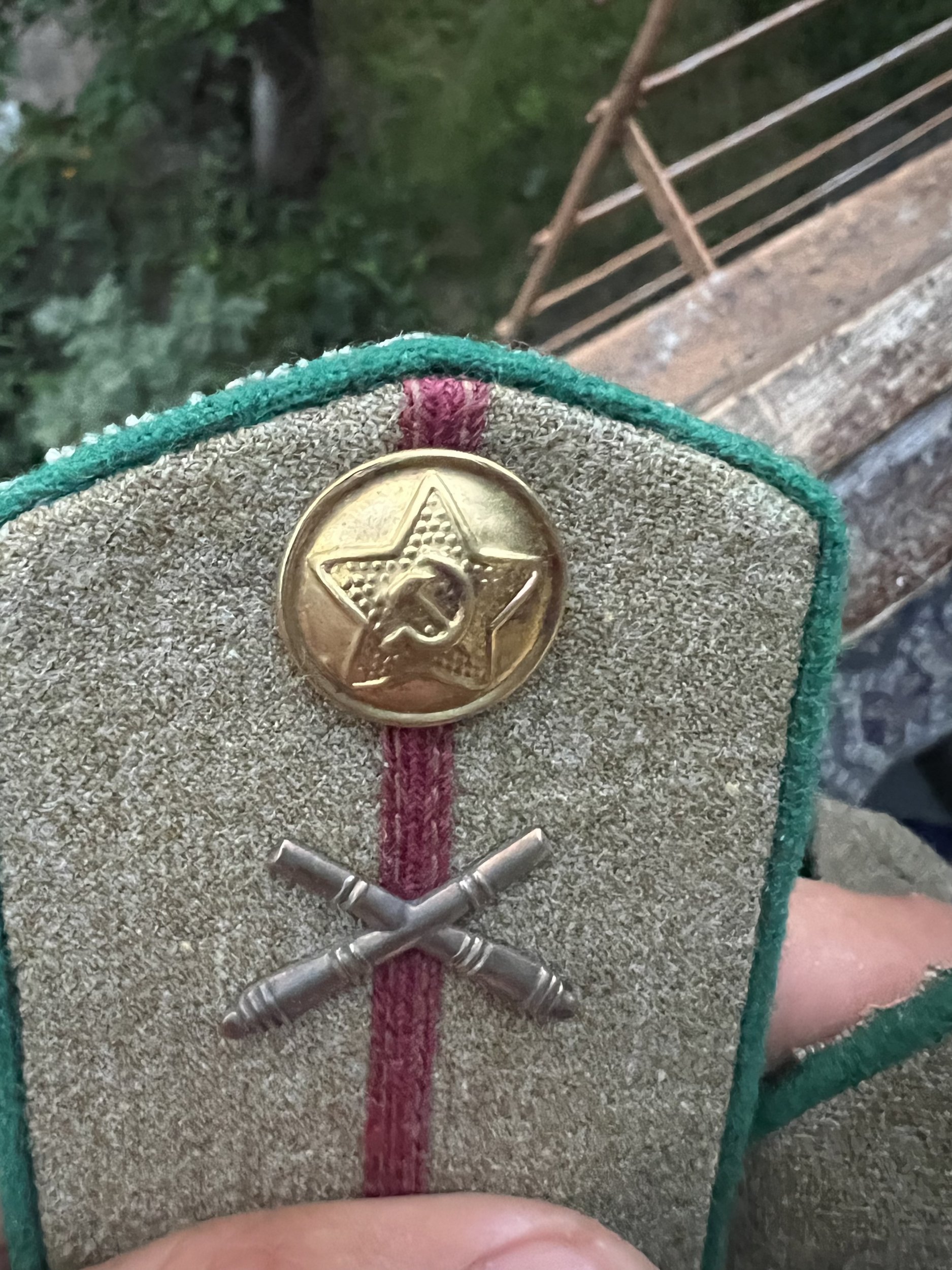 Не являюсь большим специалистом по погонам, но есть ряд моментов, которые не нравятся. Сами погоны видятся новодельными. Изготовлены по т.у. 43го года. Эмблемы такого плана считаю послевоенными. Звёзды, кроме одной, видятся на ВМВ. Но из 8и шт вижу только две одинаковые. Пуговицы - ок, приятные.