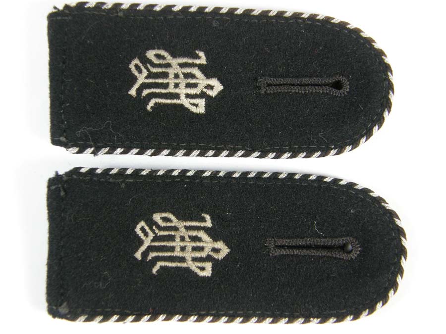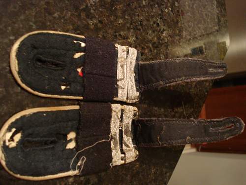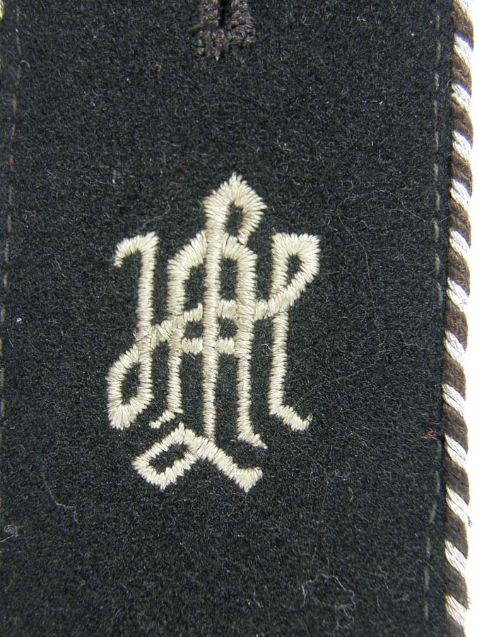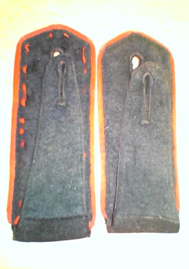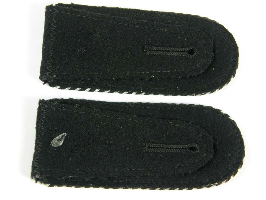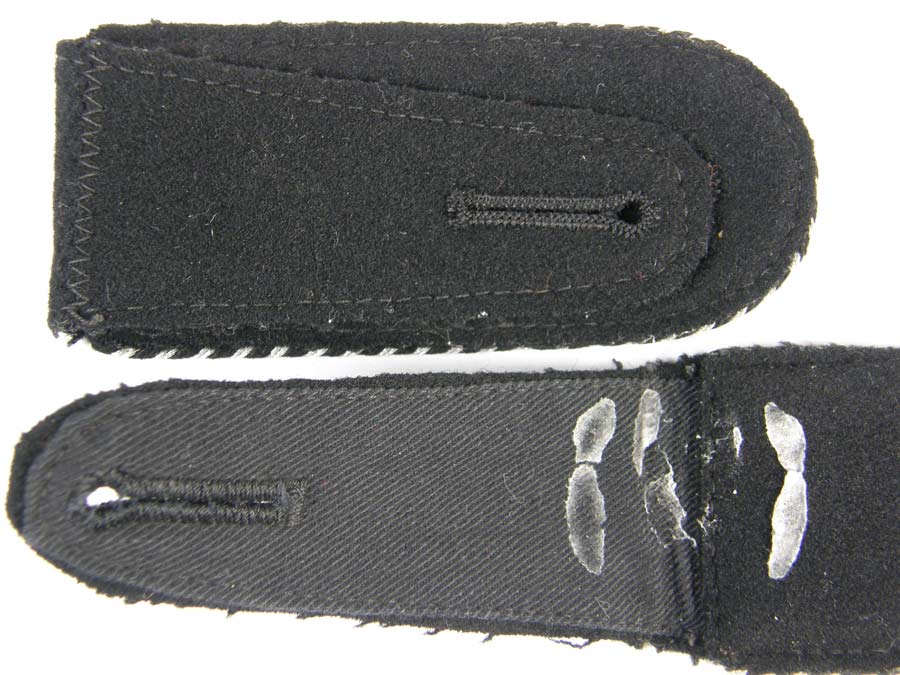 Погоны юнкера СС, кандидата на получение офицерского звания. Интересно, что с наряду с серебряным галуном, указывающим на его юнкерский статус), владелец поменял окантовку, на офицерский серебряный шнур.