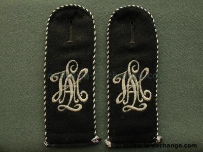 Интересный момент на всех погонах и муфтах вышивка вензеля была только белыми нитками, в отличии от Вермахта, где вензель на погонах мог вышиваться теме же нитями, что и выпушка на погонах.