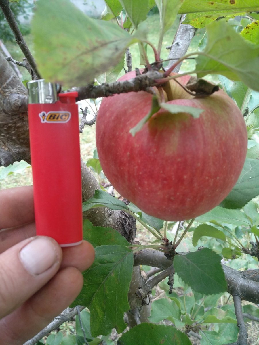 Ого В мене Чемпіон без пошкоджень.Вирішив провести експеримент.Половину яблук з дерева зняв позавчора, а іншу половину зніму десь через тиждень, бо тримаються дуже сильно.Ну і перевірю заодно,які з них будуть смачніші, та які довше лежатимуть.