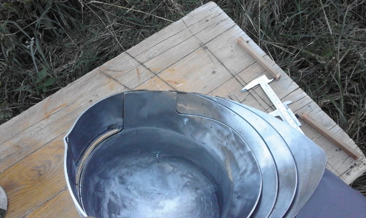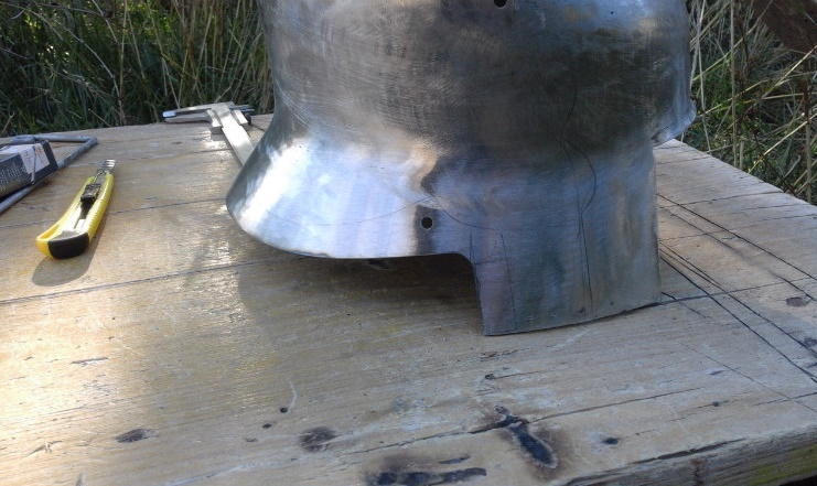 Впереди последняя подгонка напильником, кое где нужно ляпнуть сваркой на раковины и зачистить. Шлифовку финишную делать буду после полной сборки деталей шлема. А именно после того как смастерю крепёж забрала, подберу и подгоню все заклёпки.