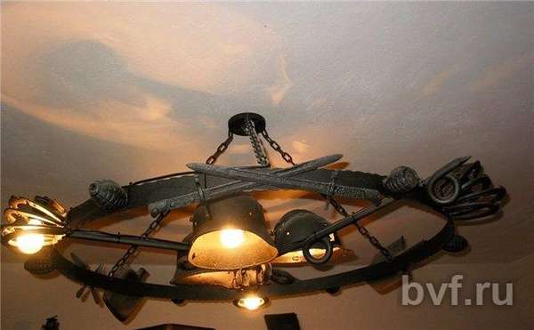 В-общем, май месяц выдался продуктивным. Продолжаем в том же духе. Вот такой светильник. По традиции, немного об изготовлении: каску точечно (чтобы было незаметно), прихватил сваркой кое-где, а то она была почти разорвана на две части. Подвес - гибкий шомпол, крепится в отверстия для кламмеров болтиками, шляпками служат обрезанные гильзы. Подключение проводки скрыто за рубашкой от гранаты, в неё, в свою очередь, вставлен стакан из толстого прозрачного пластика для безопасности, он же одновременно служит для удержания рубашки. Каска, шляпки и рубашка очищены до блеска, вскрыты лаком, кроме шомпола.