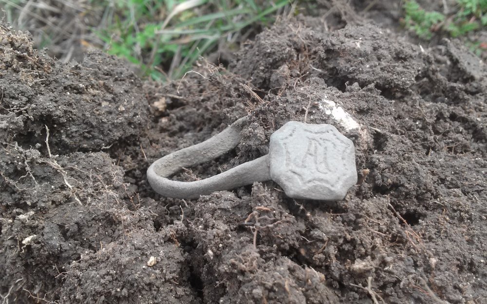 Сегодня освободился только к обеду,так что выбор куда ехать был невелик..Поехал недалеко за город. Первый сигнал и из ямки показывается половинка подковы..Первая мысль-что опять?!?(((Зашвырнул её подальше и дело пошло..бродил часа 4 по тому же квадрату,что и в прошлый раз, и всё-таки отыскал вторую половинку контрпагона,а вот середина так и не поддалась.. Порадовала офицерская орловая пуга и серебряная сережка 875 пробы.