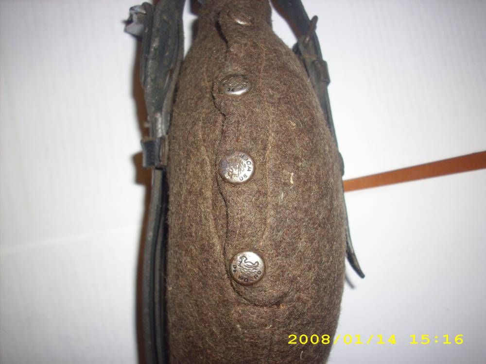 Feldflasche 31 Фляжка полевая. Оригинал. Модель образца 1931 года. Сам корпус фляжки на горлышке проштампован – FSS41, крышка - алюминиевая нештампованная, карабинчик – стальной в оригинальном окрасе, внутри него - клеймо "елочка". Без кружки. Дырок на чехле нет. Интересная деталь - узор на кнопках на чехле не крестиком, а в виде утят Цена –90 $ без доставки из Минска. Остальные фото по запросу.