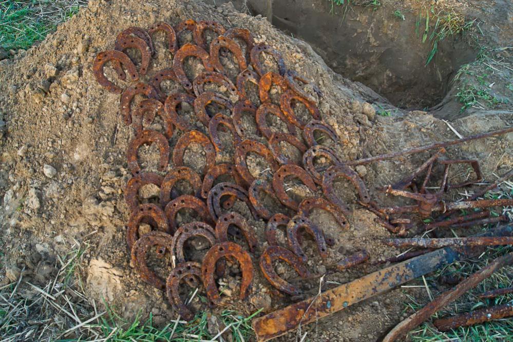 Все было на глубине метр и больше,да это сброссы,местные после нашей бомбежки по воронкам стягивали хлам,чтоб ямы меньше закапывать было.От строений по разному,где воронки были,туда и кидали.
