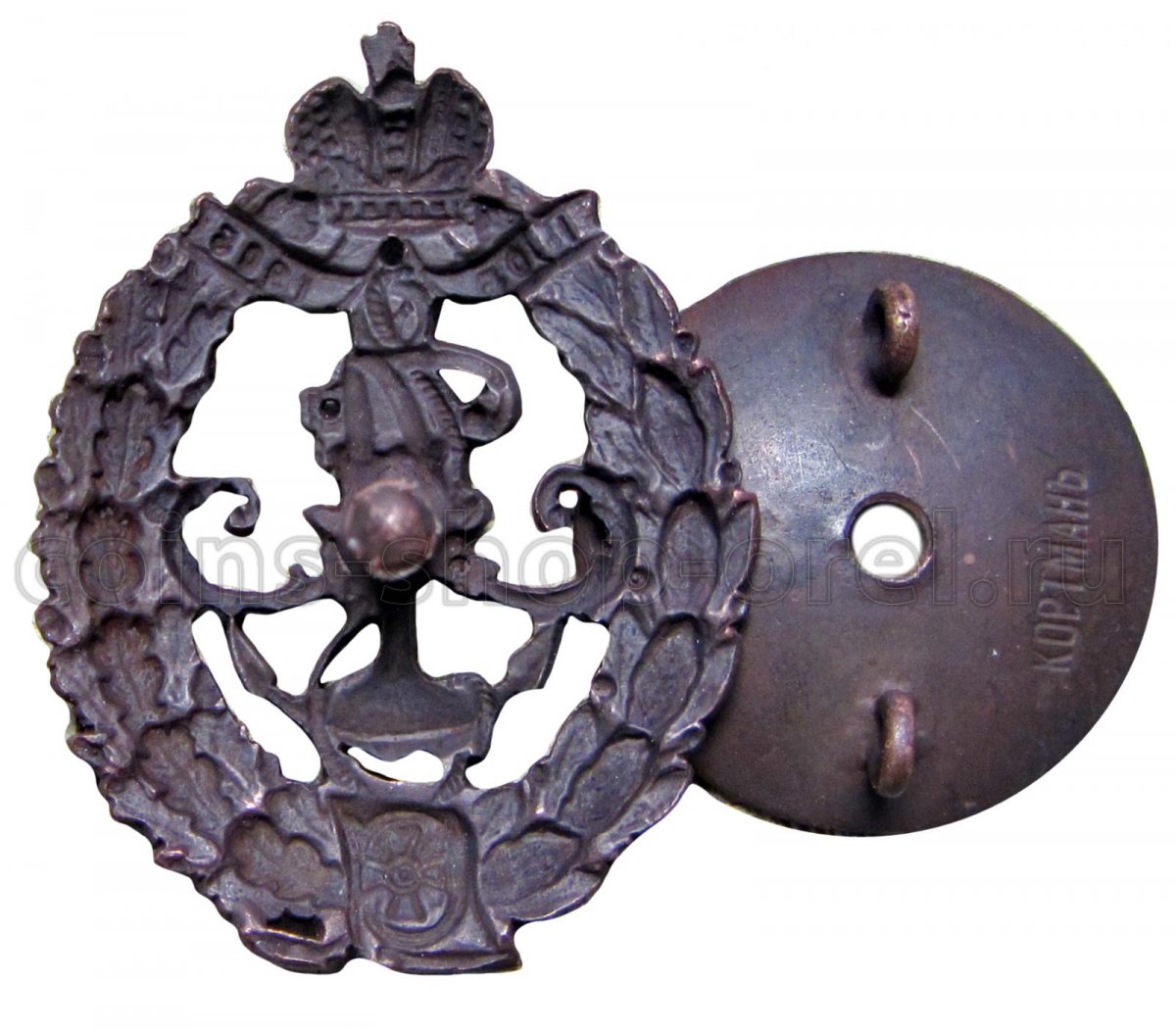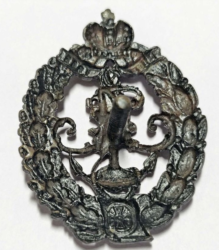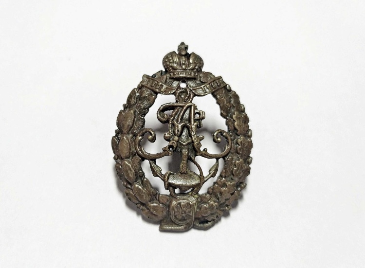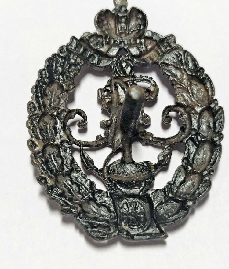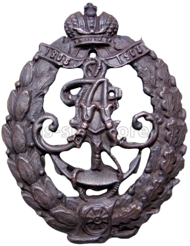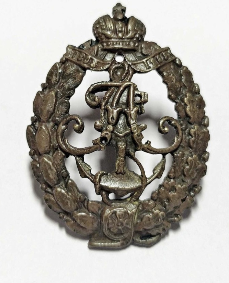 Знак 206-го пехотного Сальянского Его Императорского Высочества Наследника Цесаревича полка. Утв. 02.06.1912 . https://ourbaku.com/index.php/206-й_пехотный_Сальянский_полк https://www.ria1914.info/index.php/206-й_пехотный_Сальянский_полк Описание офицерского нагрудного знака "...Серебряный венок из лавровой и дубовой ветвей, на их пересечение наложен серебряный свиток На свитке золотая римская цифра «С», покрытая эмалью белого цвета, внутри нее золотой оксидированный Кавказский крест. Внутри венка расположен серебряный оксидированный якорь, на который наложен совмещенный вензель Императоров Александра I (серебряный) и Николая II (золотой). Венок увенчан золотой Императорской короной с ниспадающими из-под нее золотыми лентами, покрытыми эмалью красного цвета, с золотыми датами «1805» и «1905»...." P/S У вас для нижних чинов.