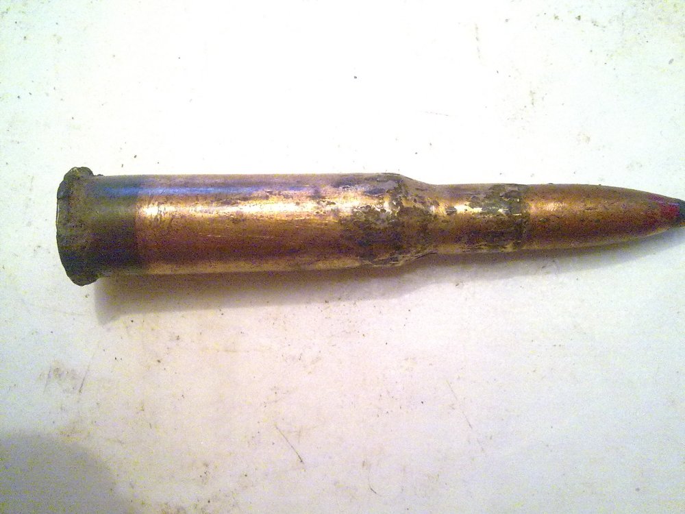 Не. Это лакировка всего патрона при отбраковке ШКАСовских патронов для использования в пехоте. Лакировалась гильза для предотвращения тугой экстракции http://reibert.info/threads/Необыный-патрон-к-ШКАСу.303668/