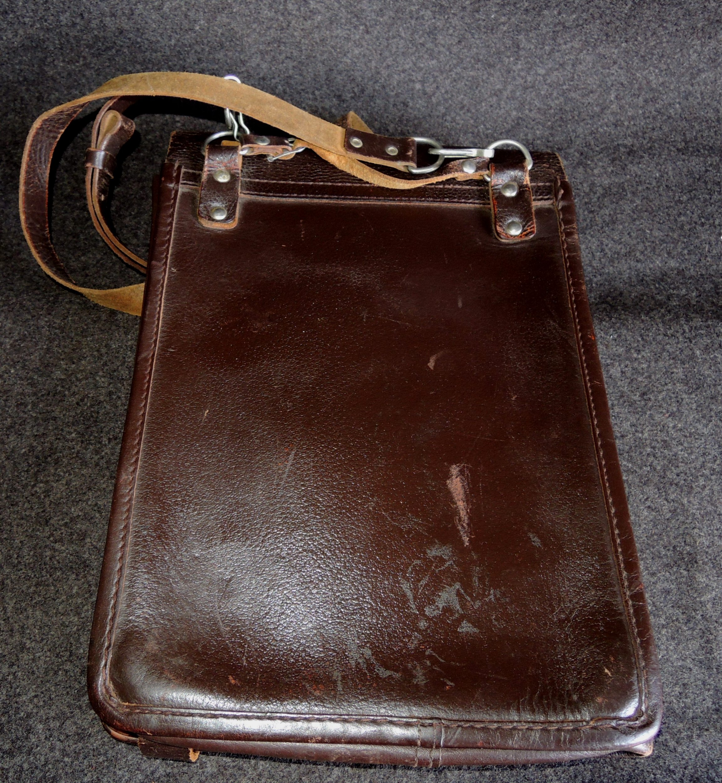 Две сумки точно военных лет - та что по середке и та что справа, с прорезной пряжкой на плечевом ремне. По той, что с черным клапаном - не уверен, возможно и ранняя послевойна. Та что по середине - фабрика Бебеля, 1944 год.