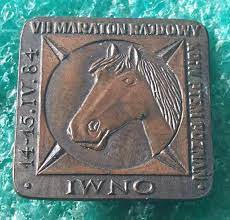 Памятный значок участника 8-го туристического марафона Ксенж-Велькопольски - Познань, 27-28 апреля 1985 года. Организаторы марафона - управление образования и воспитания г. Познань (KOiW - Kuratorium Oświaty i wychowania w Poznaniu) и Польское общество молодежных хостелов (PTSM - Polskie Towarzystwo Schronisk Młodzieżowych). Вот подобные знаки марафонов: 4-й - Чемпин- Познань (1981 год), 7-й - Ивно-Познань (1984 год).