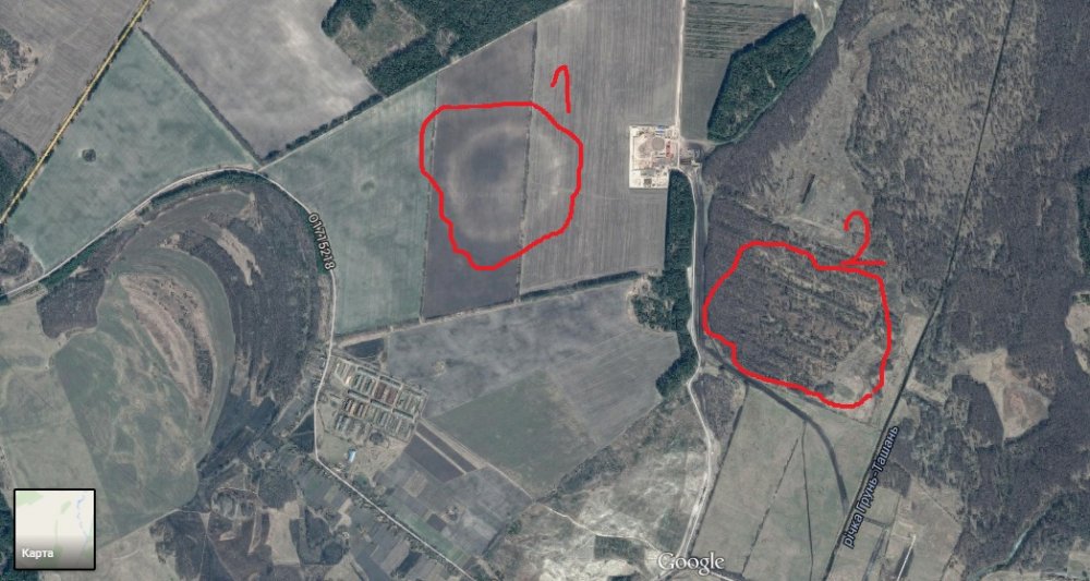 Доброго времени суток. Подскажите, знающие люди. Искал я вот хутор один, по привязанной карте он должен находится примерно в районе, что на карте обозначен №2. Но есть одно но. Там болотистая местность, низина небольшая, вряд-ли там селились люди, да и ничего найдено не было. Но вот на горке, в километре от этого места - есть поле, и через спутник видно что там какой-то круг. Может ли это и быть тем распаханным хутором? Руки не дошли, еще смотаться, проверить.С ув.