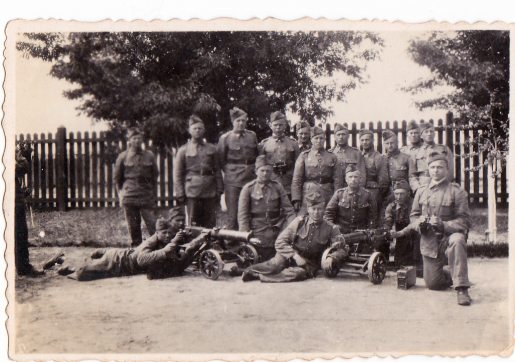 Камрады, попалось мне такое фото. Самостоятельно разобраться, кто на нем, я не смог. Сначала думал, что это какие-то восточные добровольцы. Разномастные головные уборы, многие без знаков различия (но у некоторых характерные погоны с лычками), мундиры похожи на немецкие, а максимы как будто русские,. Но у некоторых я увидел петличные знаки, значки и самое интересное - у двоих на плече нечто похожее на шнуры за стрельбу. Короче говоря, запутался. Фото я сделал в низком разрешении (общий план) и высоком (но вышло очень контрастно). Заранее благодарю за мысли. С уважением, Николай.