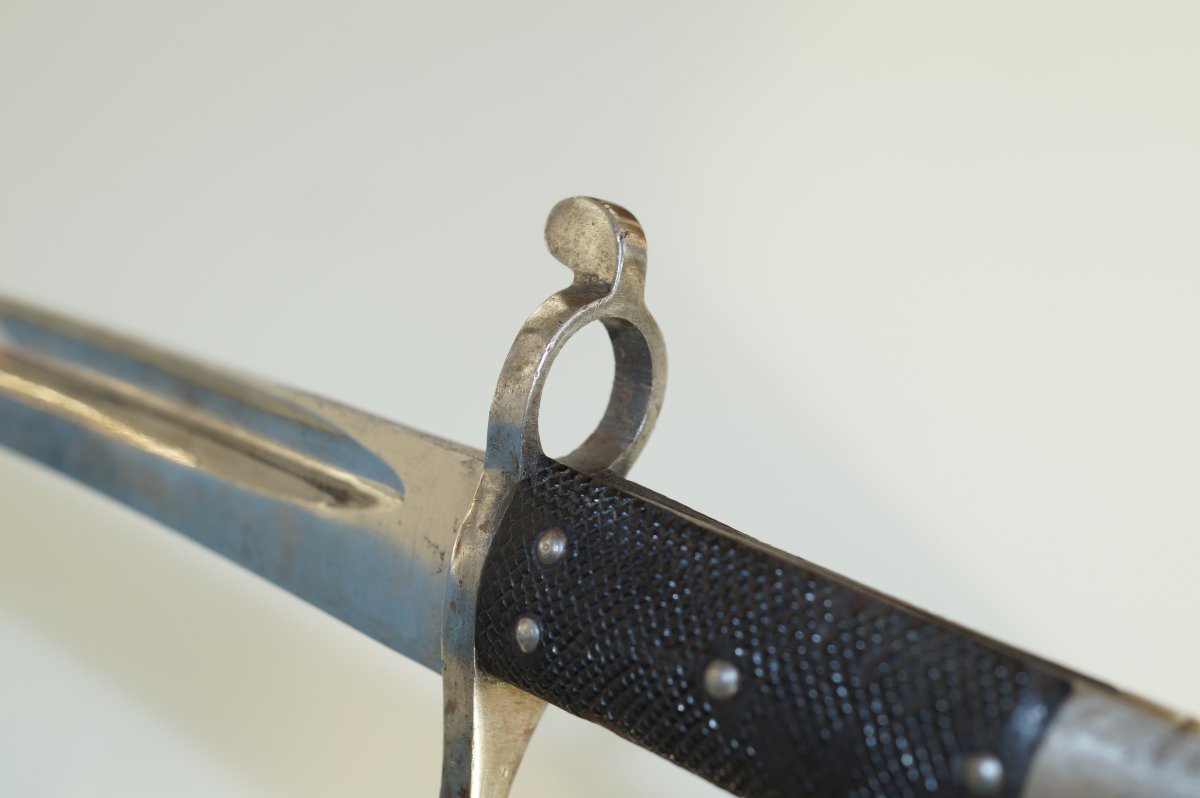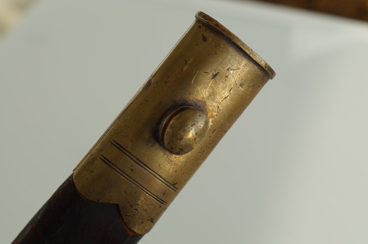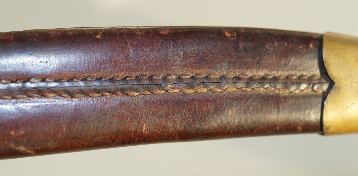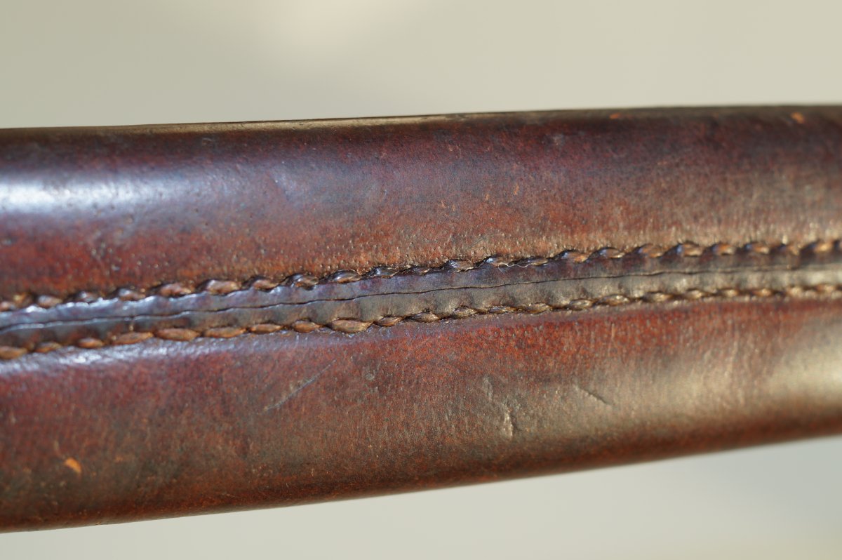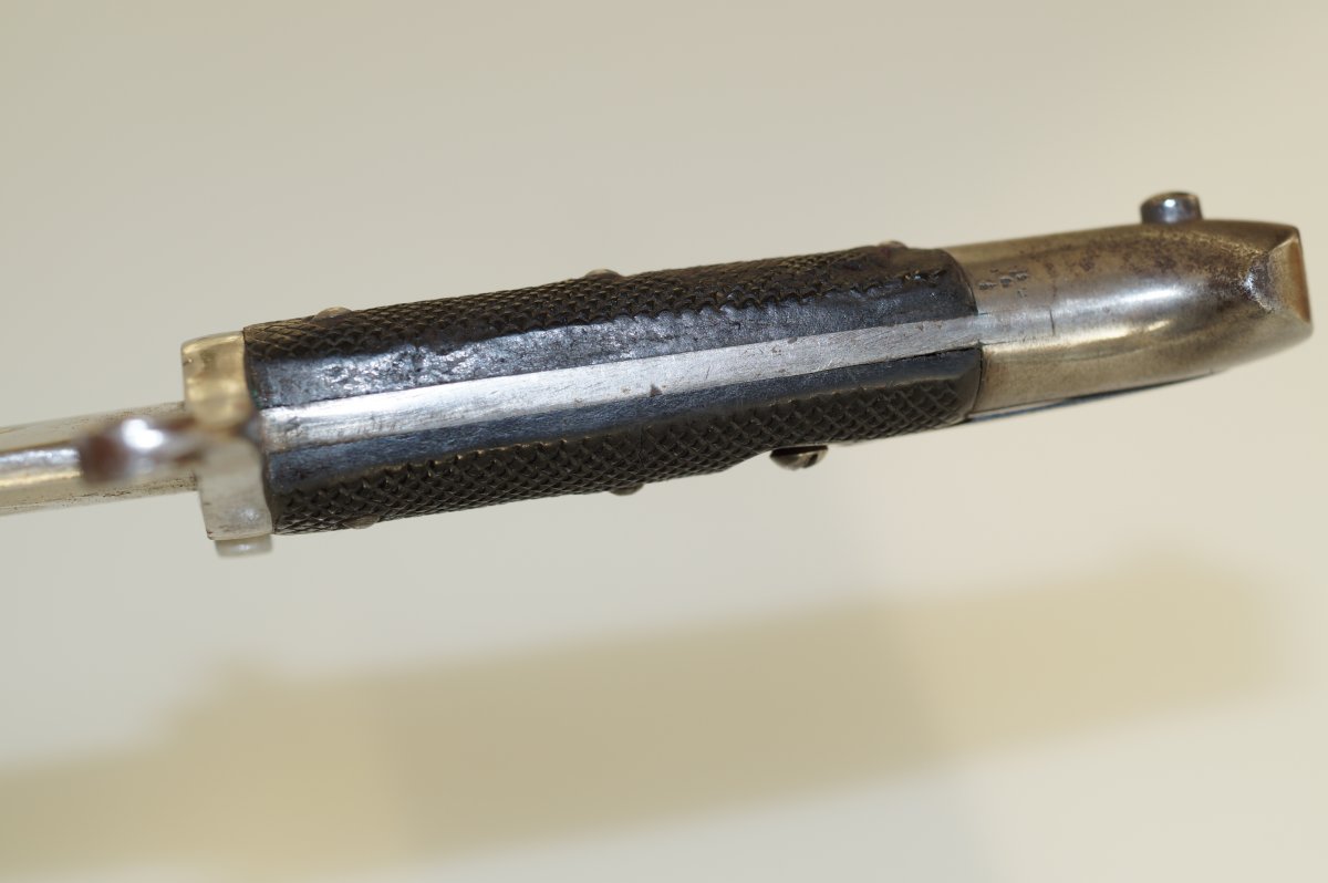 Уважаемые коллеги, помогите пожалуйста иденцифицировать данный штык. Тело ножен из тостой упругой кожи, накладки рукояти тоже из толстой кожи. Заранее огромное спасибо. С ув......