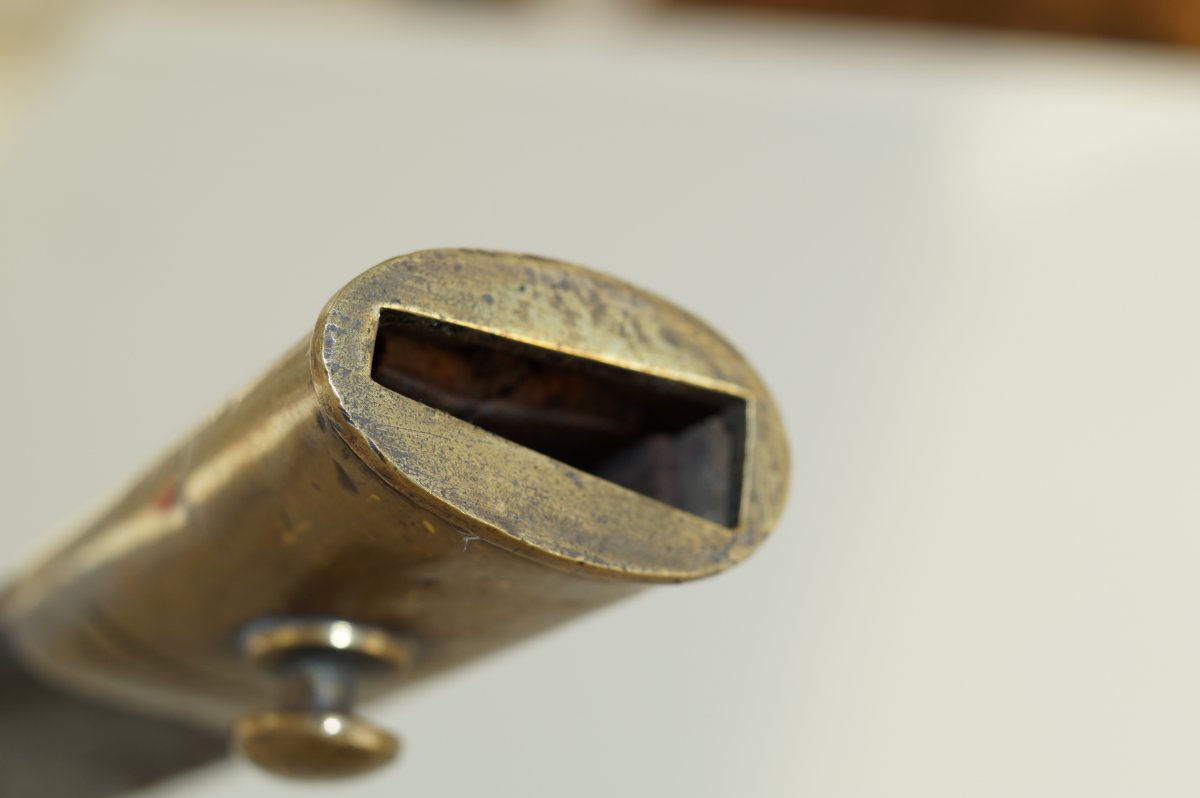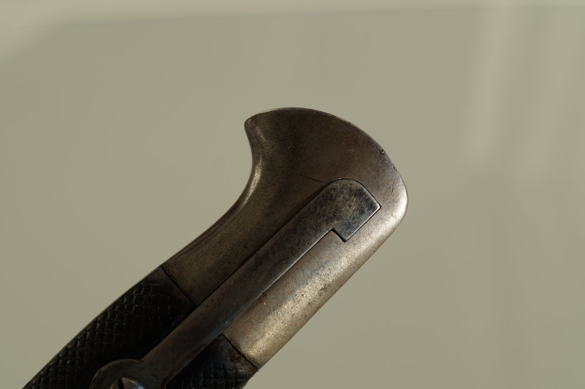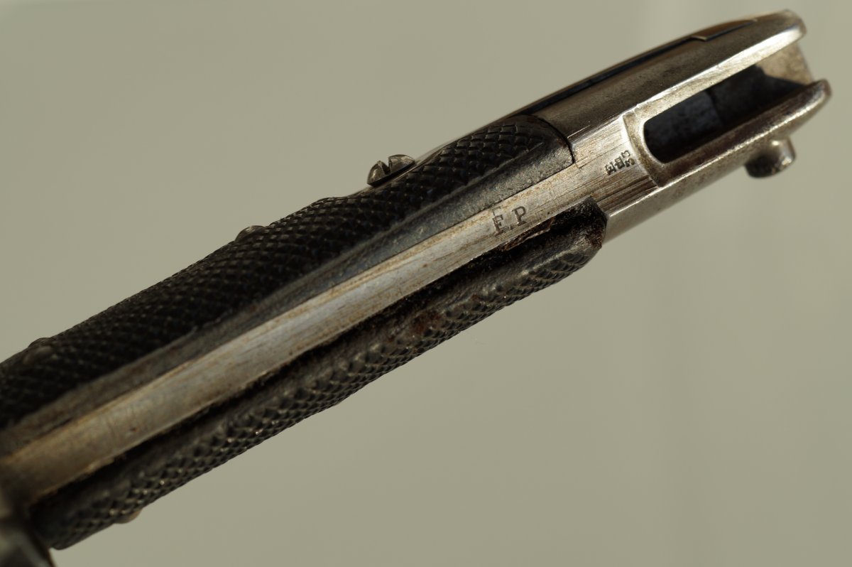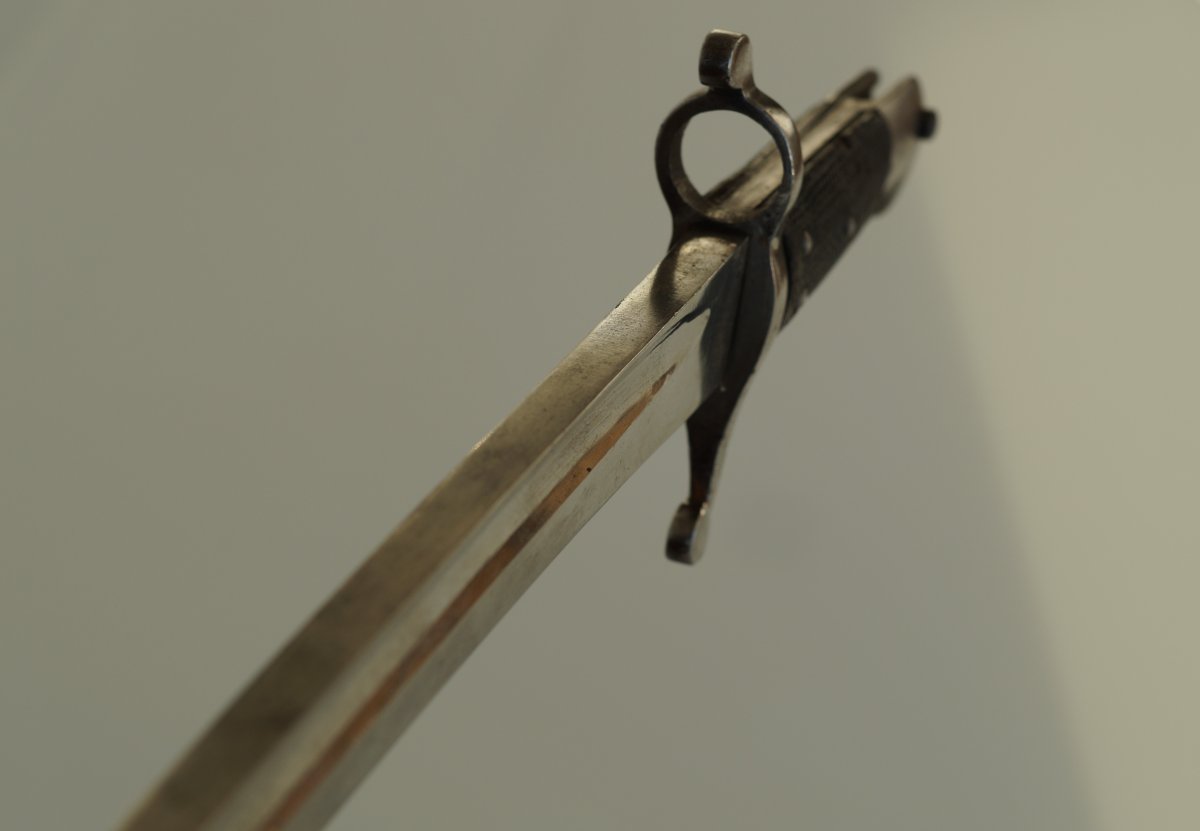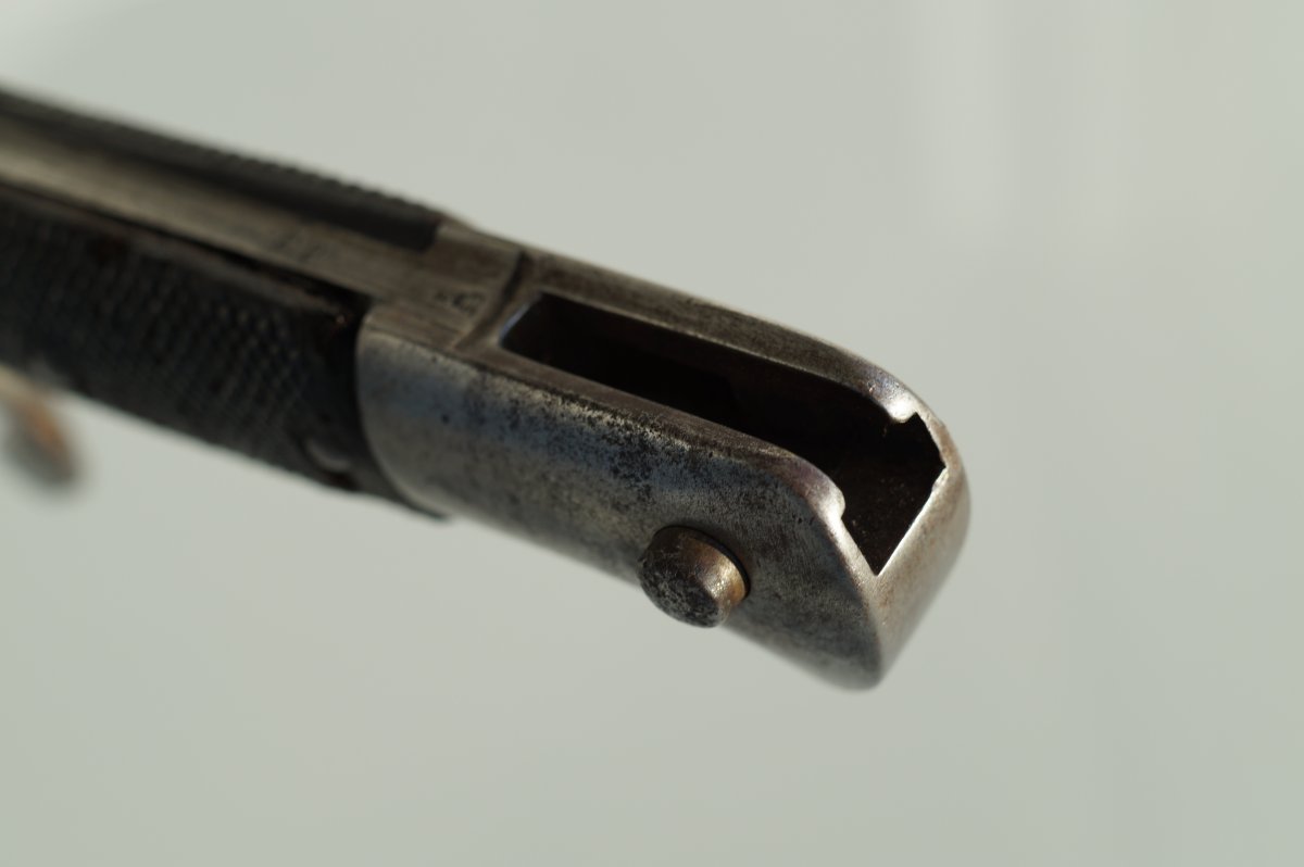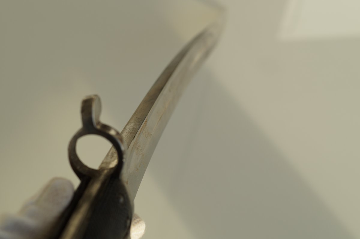Уважаемые коллеги, помогите пожалуйста иденцифицировать данный штык. Тело ножен из тостой упругой кожи, накладки рукояти тоже из толстой кожи. Заранее огромное спасибо. С ув......