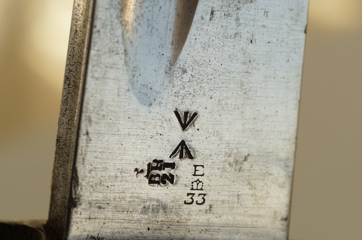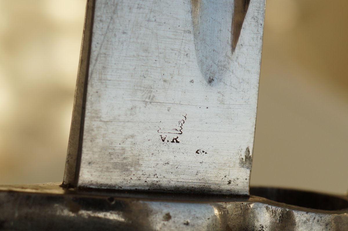 Коллеги вечер добрый. Может у кого есть инфа по поводу данного клейма в виде большой буквы "Ж" ? Нашёл предмет с таким-же клеймом на пяте клинка как у обсуждаемого на теле ножен.
