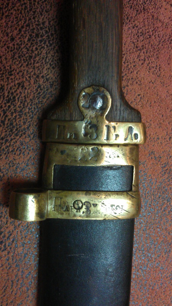 Мне в руки попал вот такой бебут. Ножны, скорее всего, не родные. Не могу расшифровать войсковые клейма. Помогите, кто может.