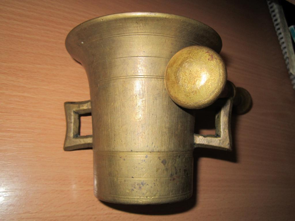 Панове! Не так вже багато я можу розповісти про кухонні ступи. Виставлена ТС ступа, це друга половина 19-сторіччя. Кухонні ступи випускалися різної ваги. Але наймассовішими були ступи вагою 1,5 кг. і 3,3 кг. По розміщенню ручок-вух, ступа ТС більш схожа на ступу вагою 1,5 кг... До бронзових кухонних ступ, люди користувались керамічними і деревяними. В 1970-х роках в Німеччині розпочався випуск бронзових ступ з візерунками і різноманітними художніми композиціями. Ці ступи мають фігурні ручки і різноманітні зображення. Ціна на них від 650 грн. і вище. Але це дійсно шедеври для колекціонування...