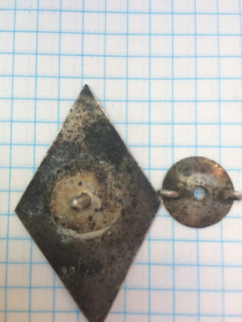 Подскажите, что за знак и стоимость. Взят с первых рук, всё родное, спереди внизу 2 клейма (84 проба и именник АЕ и еще что-то), сзади надпись: 20/XI27.