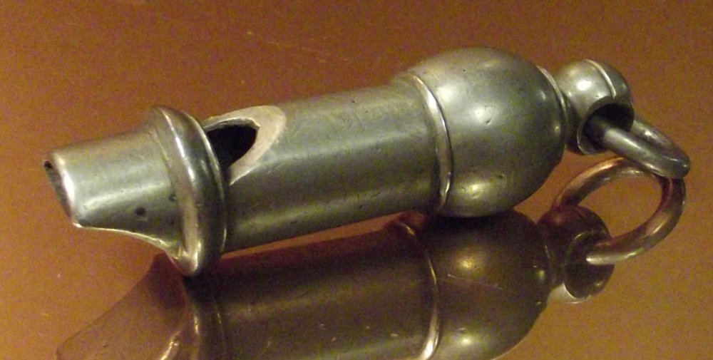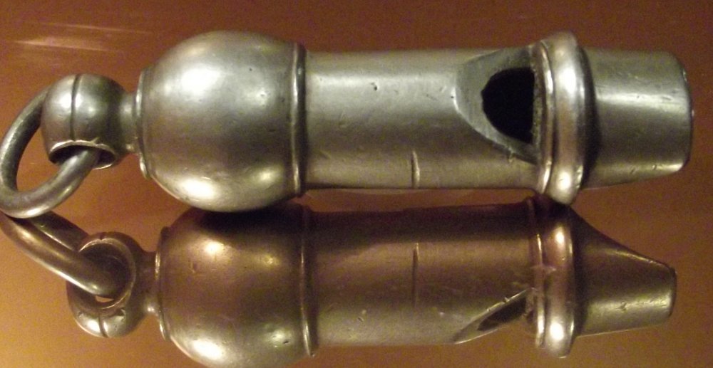 Свисток белая бронза,не мельхиор.С клеймами Ц.Р.,О.Б.и Р.Л.-ранние уставные свистки РИА(реже встречаются),поздние без клейм.Также использовались в РККА.Цена 5-10у.е.С клеймами 10-15 у.е.