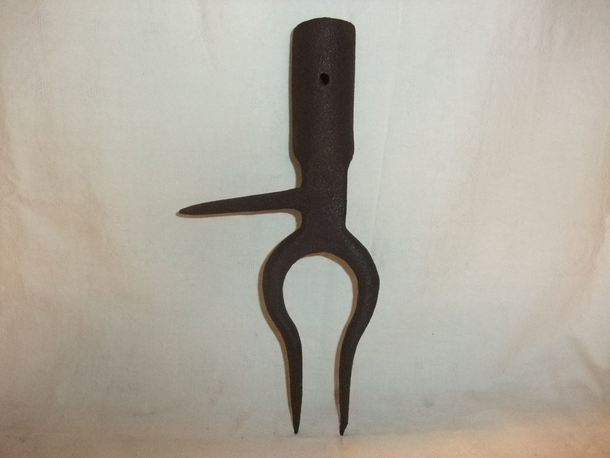 Как же теперь узнать ? Каждый кузнец в своей кузне и автор идеи , и в металл эту идею вдохновитель ! Одно понятно - был инструмент типа вил с четырьмя шипами . Два загнулись .В хозяйстве были тем - чем хозяину хотелось .