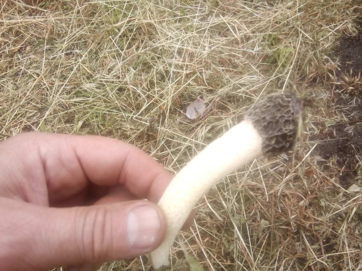 Сморчки я знаю, этот напоминает, но ножка не такая. Именно яйцо в земле осталось. Понюхать гриб, жаль, не додумался.