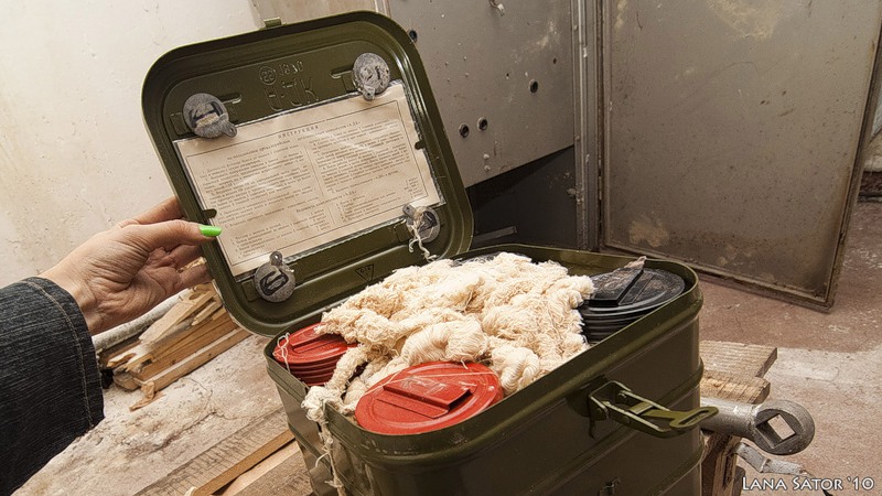 "А-ДК. Артиллерийский дегазационный комплект - техническое средство, предназначенное для частичной дегазации и дезинфекции артиллерийских орудий, тягачей, боевых машин реактивной артиллерии, минометов, а также грузовых и специальных автомобилей. Состоит из металлического футляра, в котором помещены четыре банки емкостью 1 л каждая и две кисти. Банки содержат дегазирующий раствор N 2, растворитель и вещество для приготовления дегазирующего раствора N 1. А-ДК находится при соответствующей артиллерийской материальной части и перевозится вместе с ней в машинах, тягачах и т. п."