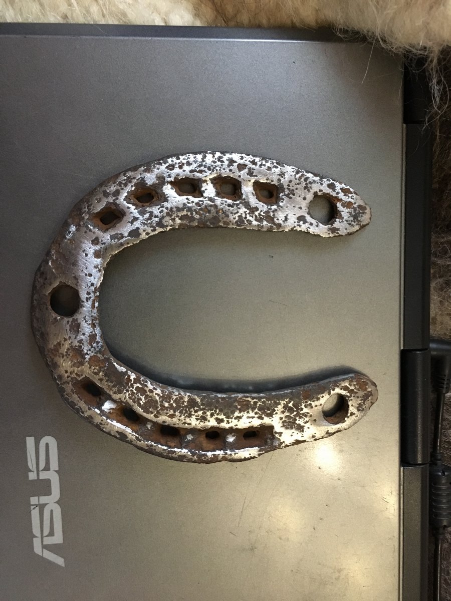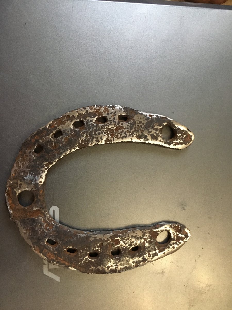 Здравствуйте, а что вас смущает? Обычная подкова широкого временного диапазона от конца 19 до середины 20 века с отверстиями под шипы противоскольжения. Вполне относится к периоду ВОВ. Чаще всего подобными подковывались наши лошади, немецкие с 4-мя отверстиями.
