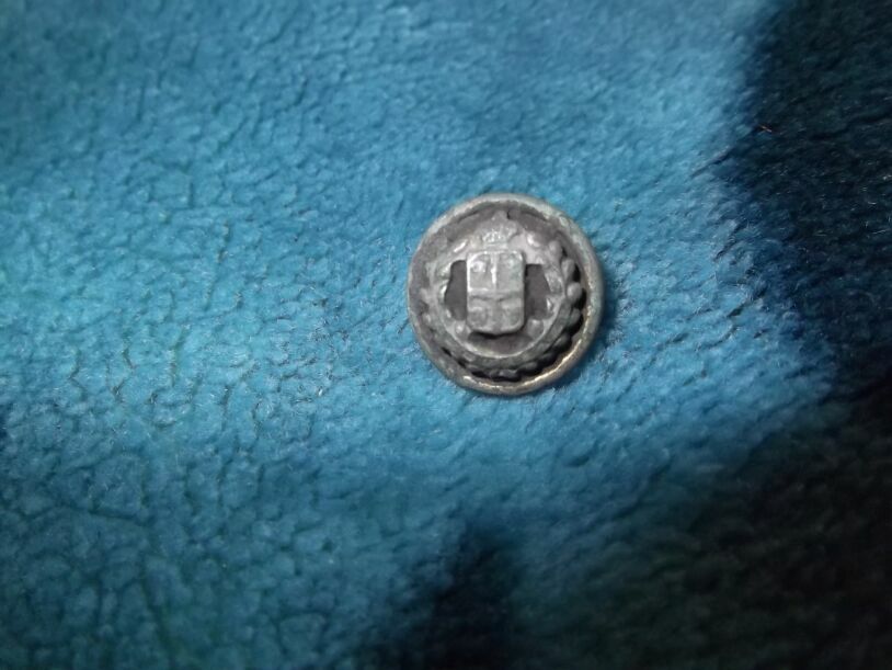 После вымачивания в томатном соке и бани водой с мылом выступила неплохо сохранившаяся позолота.К сожалению пуга маленькая (эполетная) и герб не очень четкий и надписей на нем нет.Но в любом случае спасибо!Теперь есть отправная точка поиска.