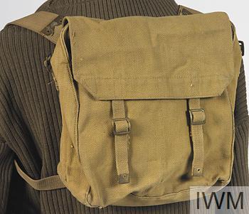 Доброго! Поддержу ув. Paddie, хаверсак голландский, клеймо видится ‘MvD’ (Ministerie van Defensie). Хаверсак носился согласно британского устава 1937 года: - в походном положении (Full Marching Order) - через правое плечо (на левом бедре), за спиной был походный рюкзак (valise) - в боевом положении (Battle Order) - за спиной вместо походного, закреплялся к подсумкам с помощью L-образных ремней - в облегченном боевом положении (Musketry Order или Skeleton Order) - не носился С уважением,