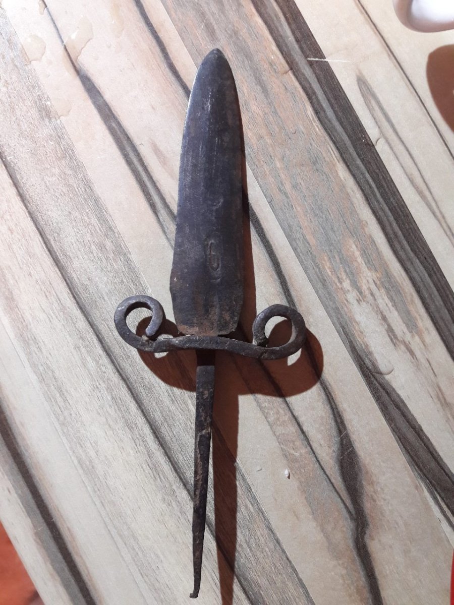 Здравствуйте, если вещ оригинал, предположу что времен козаччины ножичек. Крутой ножичек!