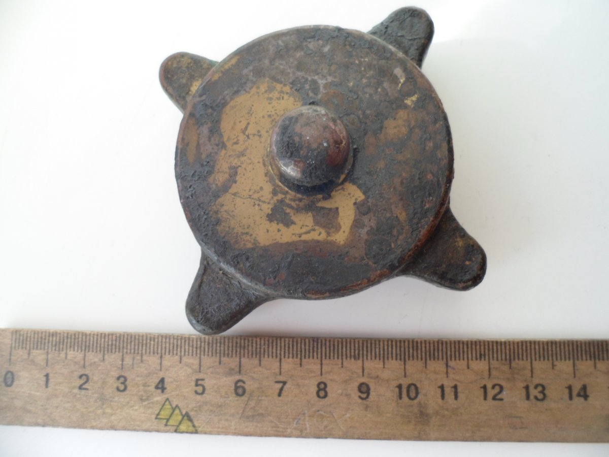Добрый день.Помогите определить крышку топливного бака.Металл латунь.Найдена на позициях ВОВ.