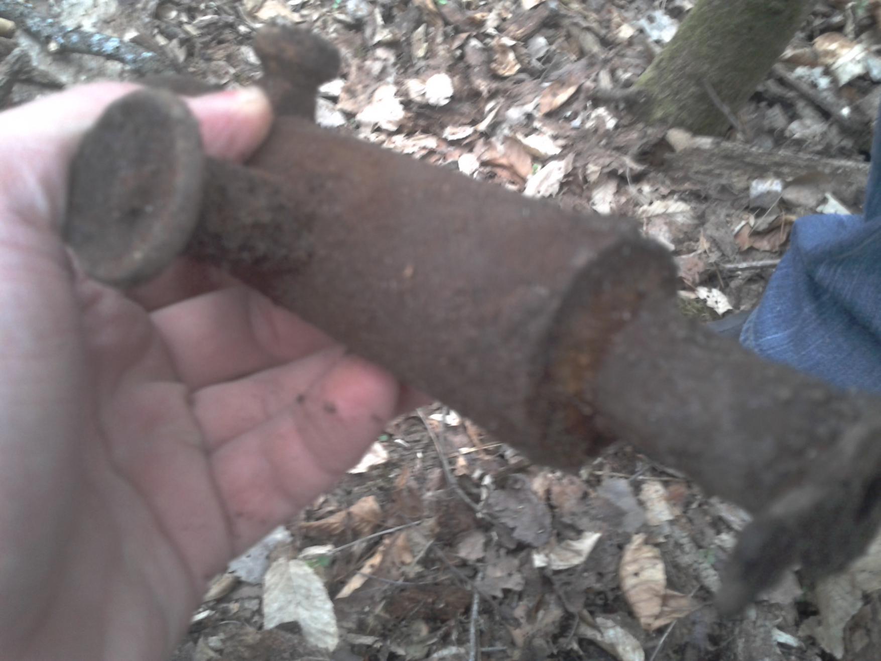 Приветствую. Вот откопался такой снаряд вроде не стреляный и какая то железяка похожая то ли на часть огнемета то ли просто горелка. С уважением.