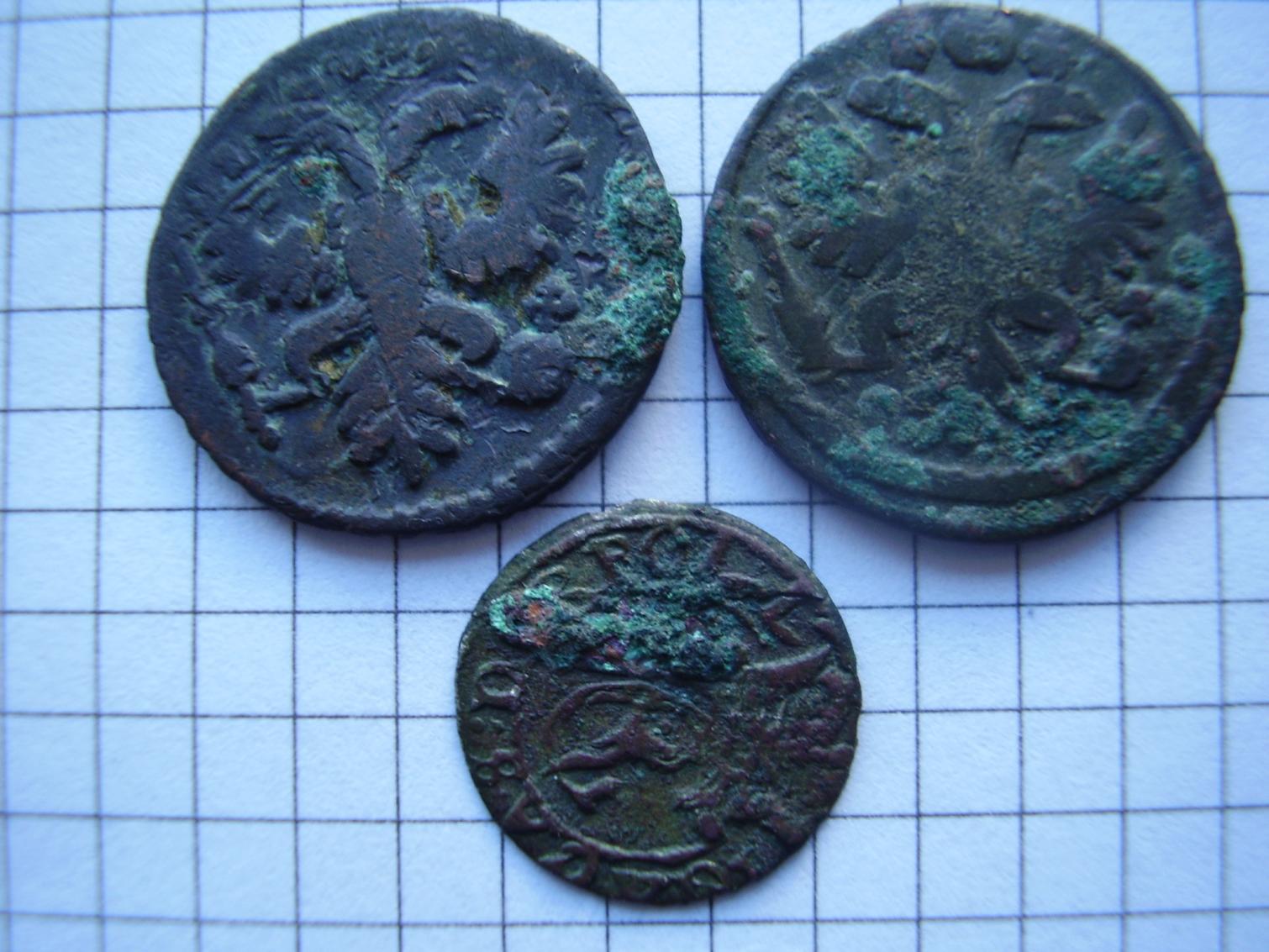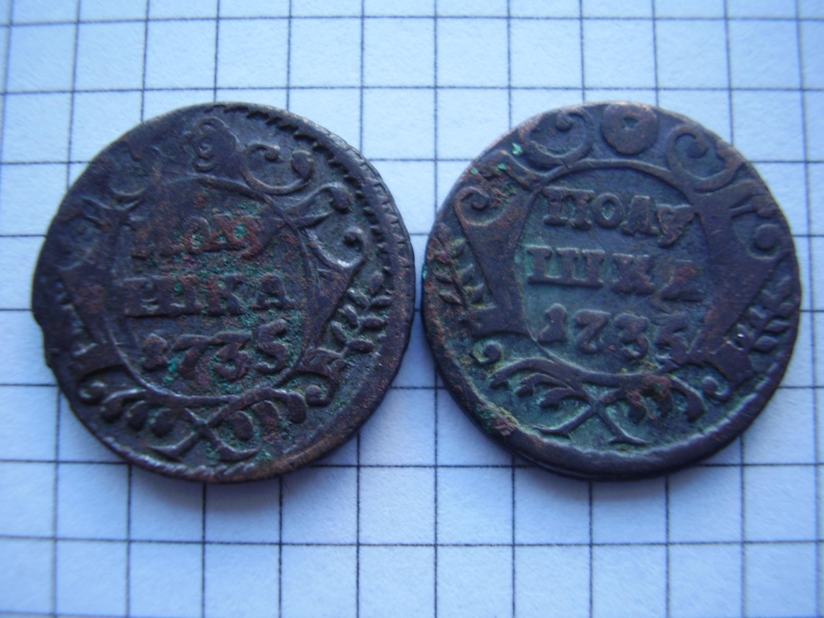 Полушка (1/4 копейки). Цены - http://www.m-dv.ru/catalog/id,1260/prohod.html http://gdenashel.ru/katalogrus/1249-polushka-14-kopejki-1734-goda.html