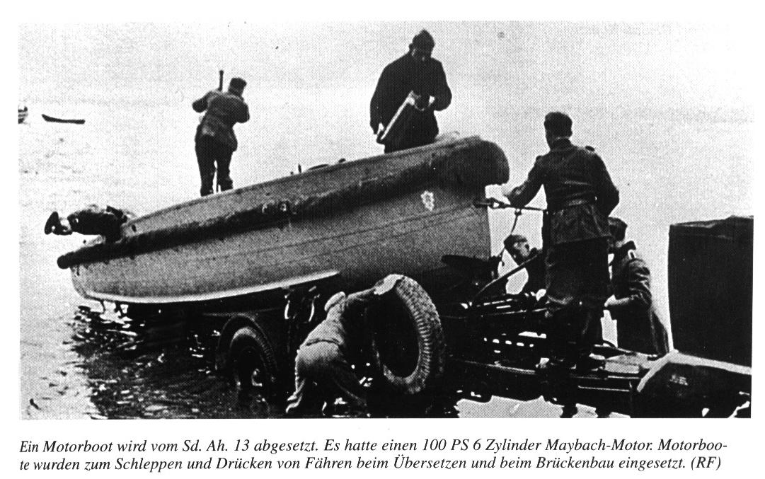 Если в дивизии были подразделения со штурмовыми лодками и катерами, т.е. мостовые колонны типа B и K нового типа (примерно с 1940). К 1941 мостовые колонны были выведены из пехотных дивизий, в начале 1942 - из мотопехотных. С середины 1942 они оставались только в танковых дивизиях, GD и некоторых дивизиях СС. Изъятые из дивизий колонны относились к частям РГК (Heerestruppen).