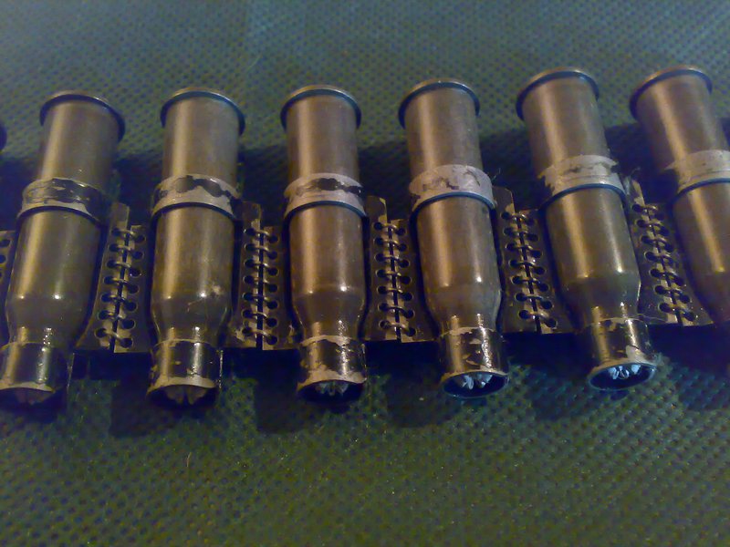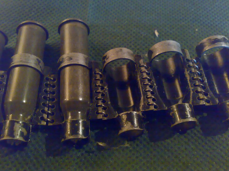 Вчера нашел начальную ленточку СГ-43....по одном французском журнале(статья про русских лент для Пулемета Максима1910-1950) выходит что это СовеТская лента СГ-43 -производство 1947-ого года.... но не точно подходит по размерам.....счас в лимонке положил но вот вчерашние фотки... прально нашел или путаю....вопрос идет по нижнюю....