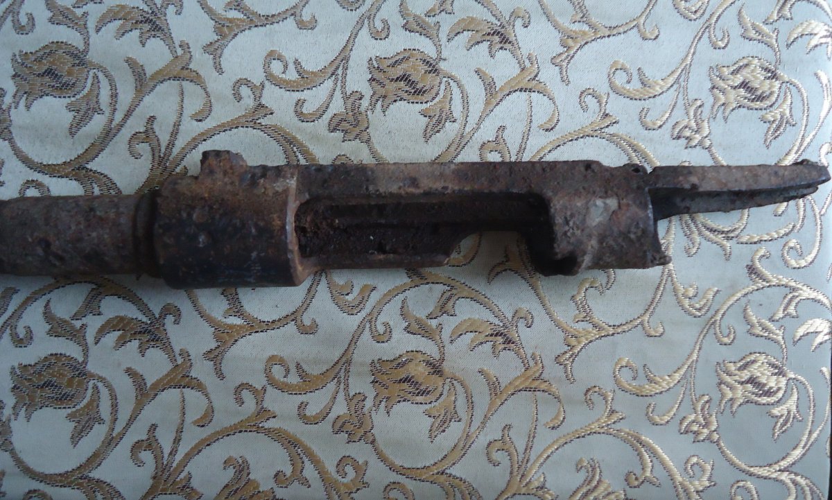 Здесь мушка, тыльник блесна с немца, база и прицельная планка с маузера 33/40 егеря, затвор подходит любой, ложевое кольцо гевер 98, прилив штыка правда своеобразный, хомут с вз 24