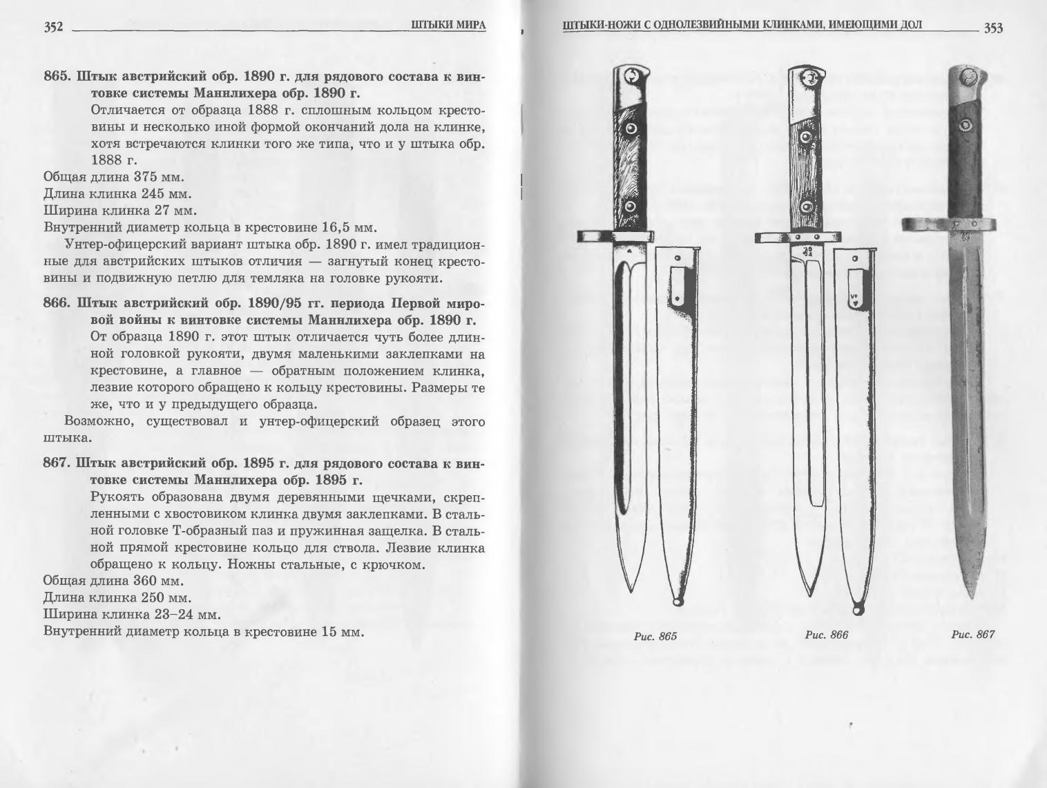 Мой штык 100% Чех. Меня интересует происхождение ножен. Как я уже писал они впринципе по внешнему виду сходны с ножнами Чешкого экспортного штыка образца 23 г., я и приобретал его как комплектный экспортный обр.23 г., так как сам штык ничем не отличается от образца 24 г., только отличие в крючке ножен, но меня смущает тот факт что внутренняя ширина ножен на 5 мм. шире клинка штыка. Поэтому и задал вопрос может кто встречал именно такие ножны, но у другого штыка. На приложенном мною скане штык не мой, но как я уже писал в классификаторе Кулинского по размеру длины клинков, мои ножны ни к чему не подходят по длине кроме чеха. За исключением № 833 по Кулинскому, но я не видел таких штков в натуре и не знаю какие к ним шли ножны, вот и поинтересовался может у кого в коллекции имеется штык под указанным мною номером 833, что бы узнать какие у него ножны. Заранее благодарен все кто проявил интерес к моему вопросу.