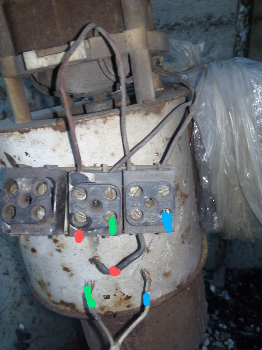 Добрового времени. Комраден был у меня подключен двигатель на 220. Я нечайно выдернул провода. И немогу дать дупля что куда прикрутить. Я вообще не разбираюсь в електрике. Там какаято перемычка и три квадратика. А что что куда пихать...никаких конденсаторов я не вижу.