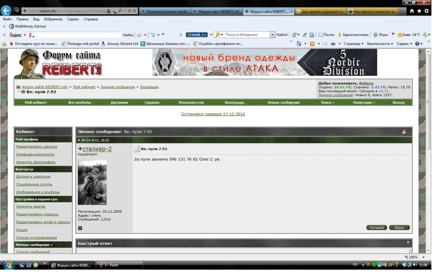 Сталкер - вы слизкая подлая натура. Вам ничего не стоит облить человека грязью и остаться чистеньким в стороне. Ведь это ж вы проводили сделку. Сознайтесь. Попросили товарища прикрыть если что. На ваших пулях те же следы от ключа. Решили от говна избавиться? Почему то ваш товарищ меньше всего учавствует в разбирательстве. Ведь так же.