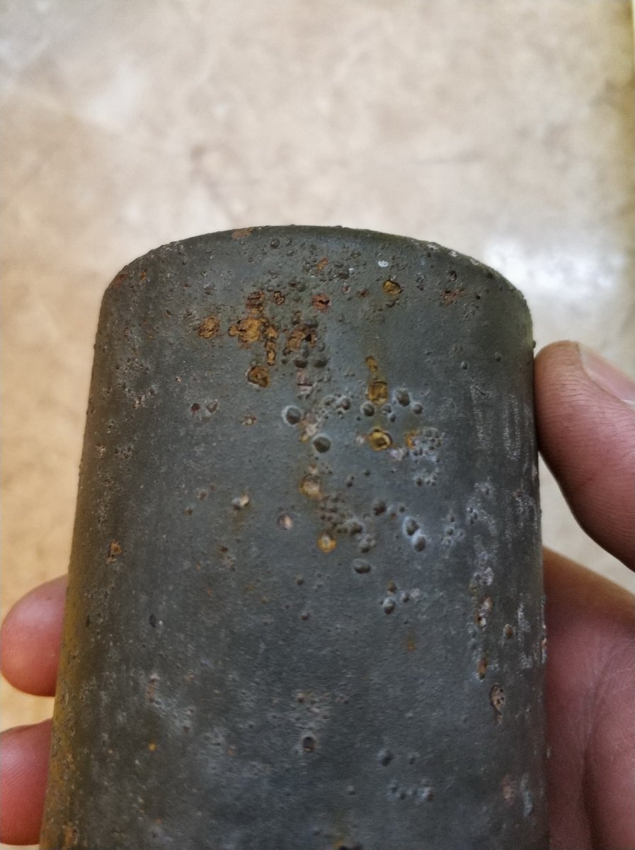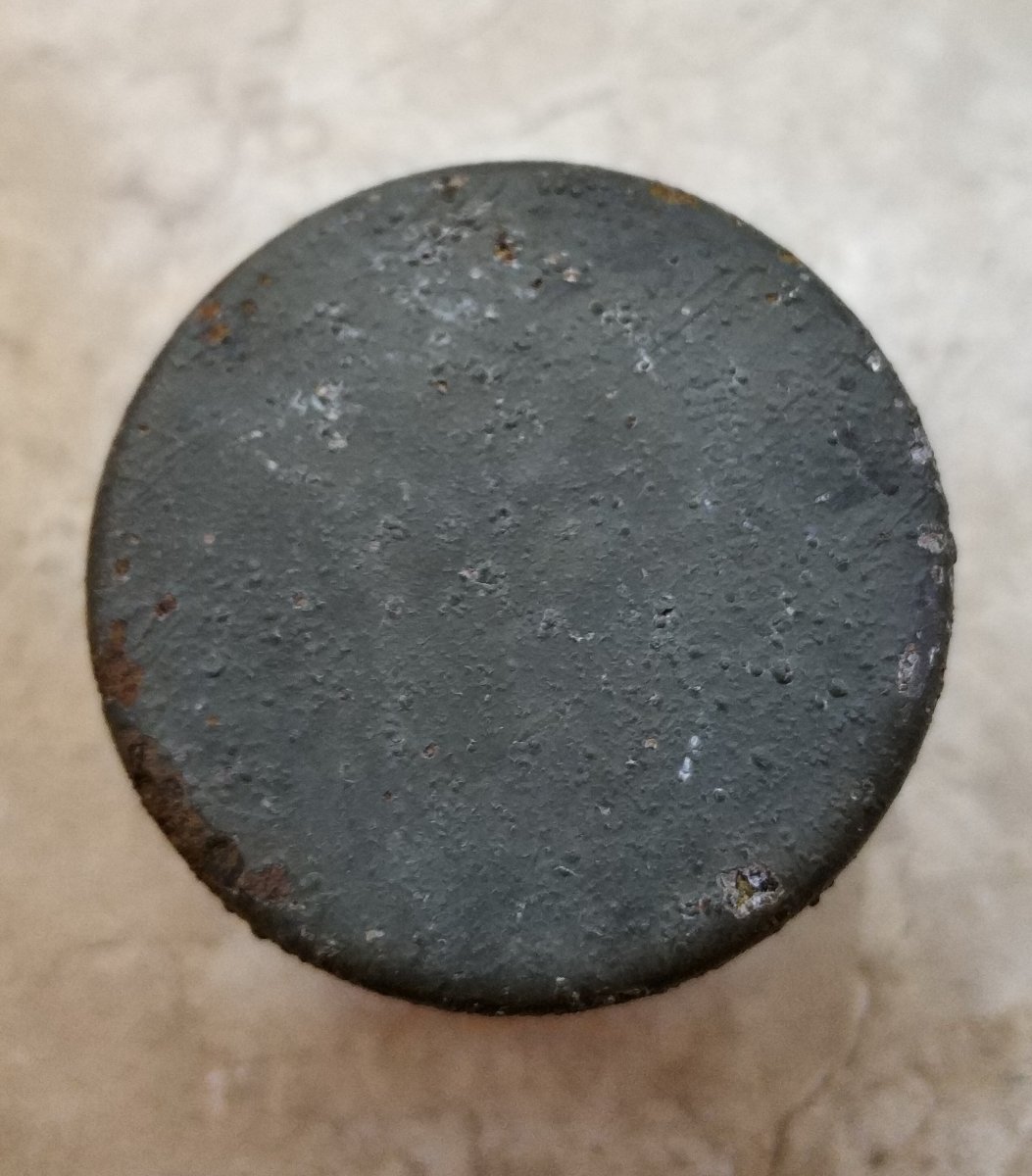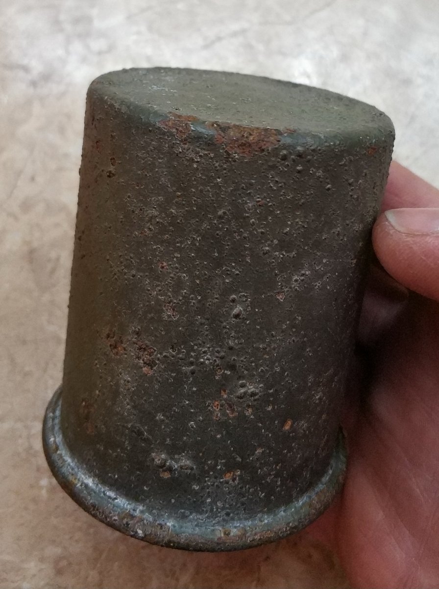 Здравствуйте! Попал мне в руки такой ММГ колотухи. Краска, надписи - все родное. Что до этого уже делалось: После леса вымыли, минут 15 держали в щавельке. Вымыли внутрянку. В процессе открылся свищ. На фото 7. Потом уже пустую еще немного подержали в щавельке, замазав пластилином свищ. Погасили содой и высушили. Краска самую малость стала бледнее, зато по-максимуму убили ржу.На фото то, что получилось. И вот теперь вопросы: 1.Самое главное, нужно ли еще чем обработать (может есть какой ингибитор для ржи), чтобы ржавчина не пошла дальше работать? Что делать с язвочками ржи? 2. Чем вскрыть корпус? У меня в мыслях растопить обычный пчелиный воск и натереть. Есть у меня и микровоск, но его нужно наносить на горячо и у него температура плавления большая, что-то в районе 100 градусов. 3. Свищ заделать или оставить как есть? Есть быстросохнующая двухкомпонентная эпоксидка, она серая, но можно сделать похожий цвет и бережно замазать отверстие. 4. Ну и чем лучше/правильней заполнить банку, чтоб и вес придать и как консервант был? Залить парафином от свечей? Прошу помощи, т.к. в таком сохране железяка досталась в первые и хочется максимально сохранить товарный вид. Спасибо