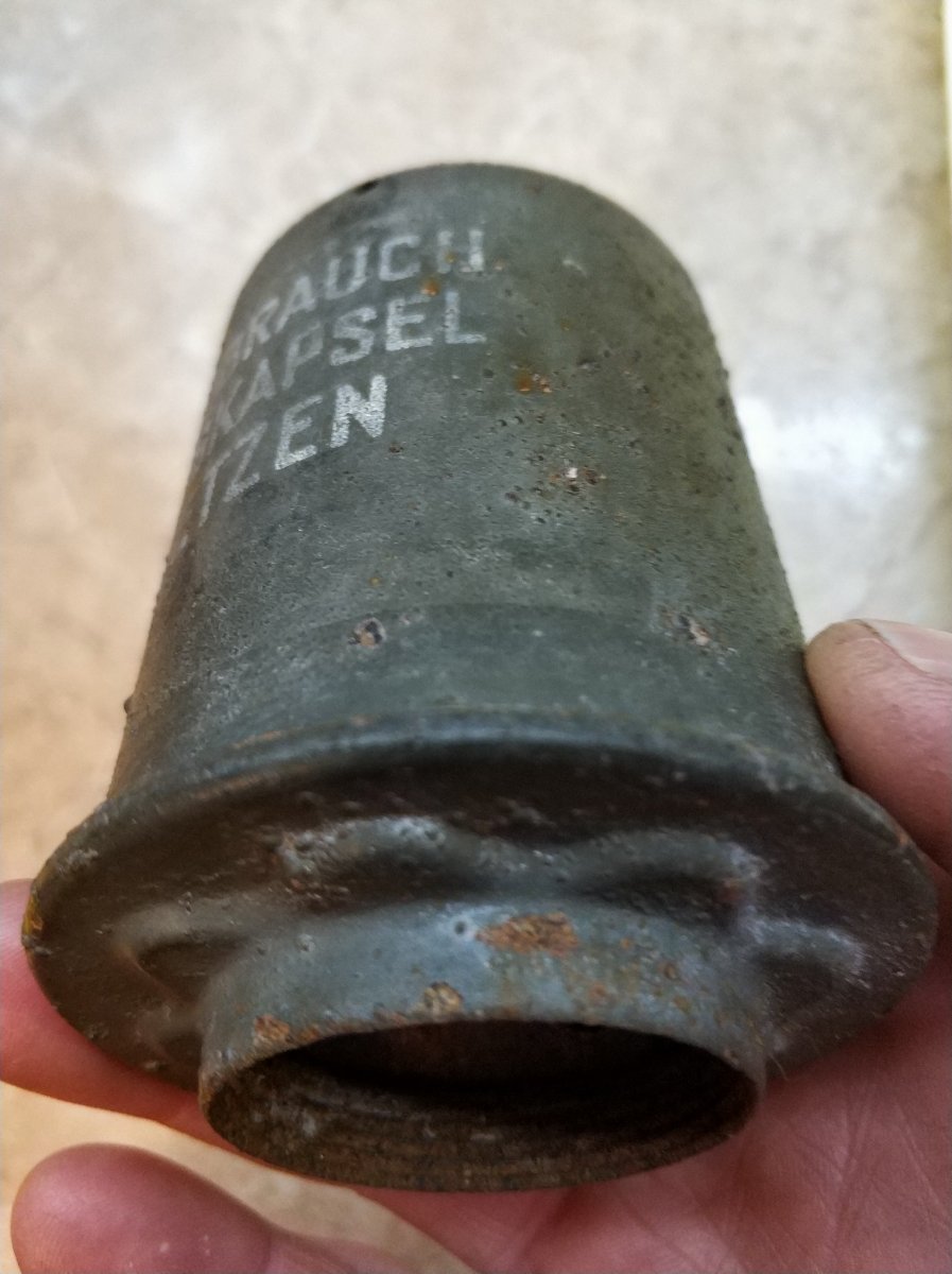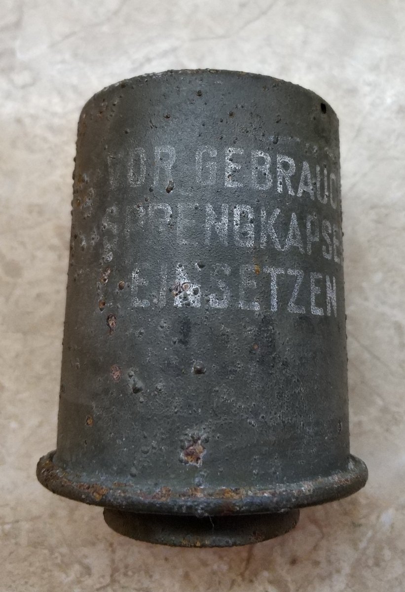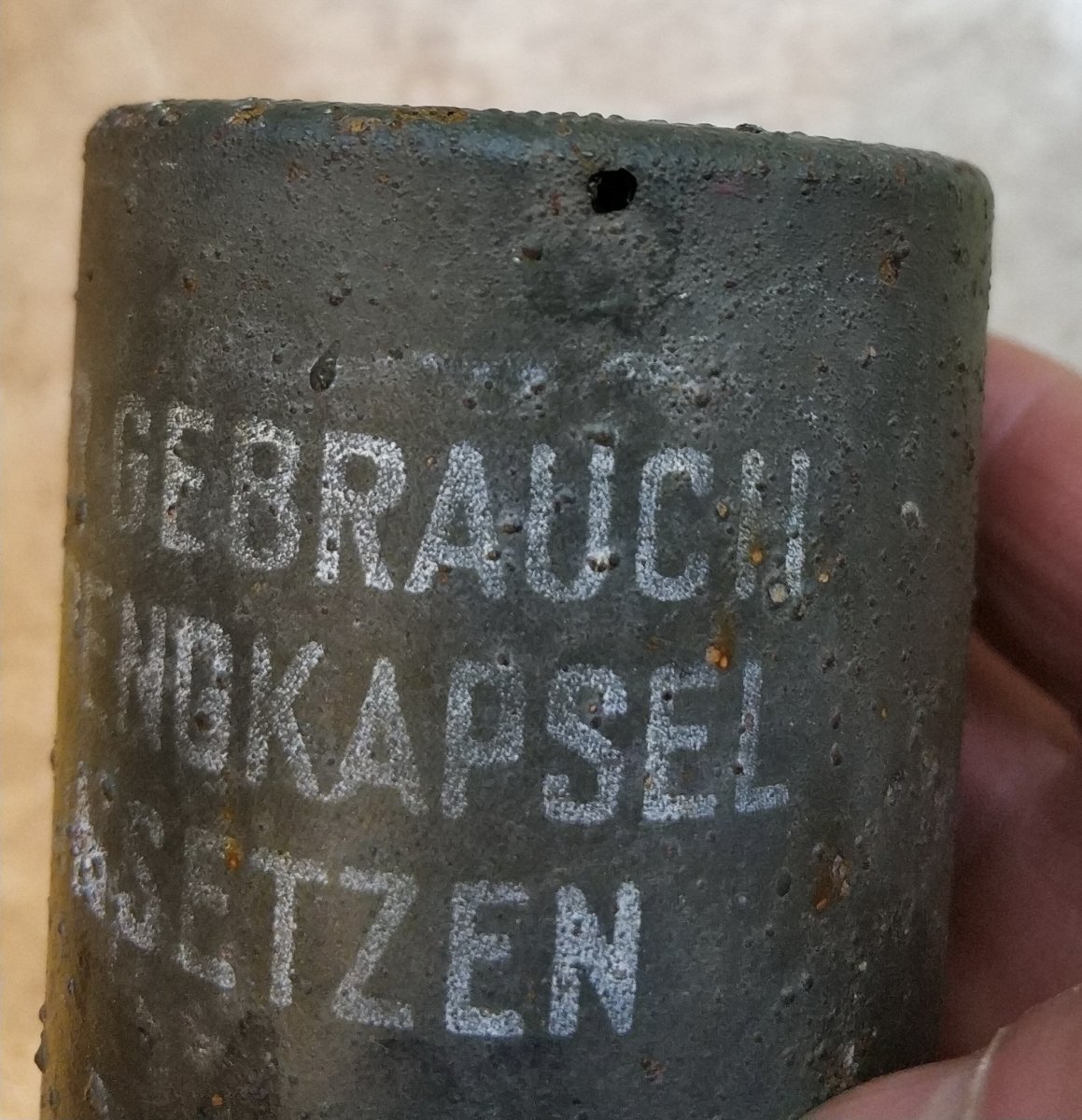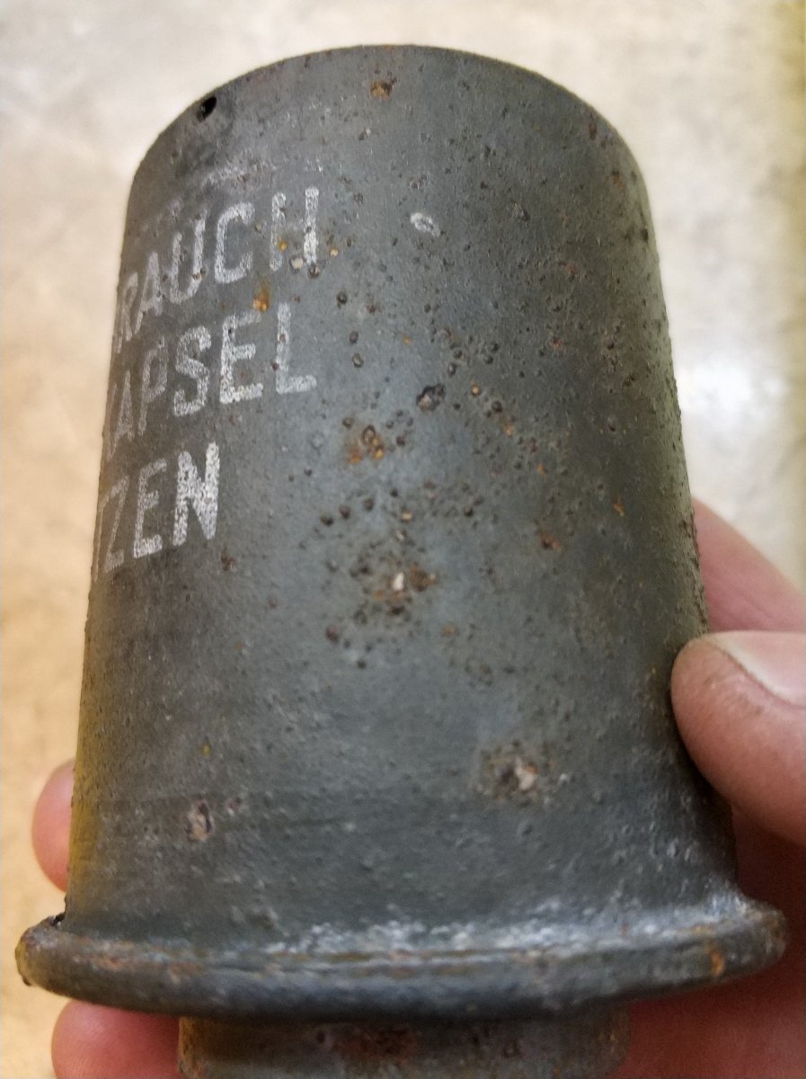 ВВ у корпусі М-24 упаковано в вощений папір. Краще папір видалити (швидше висохне перетворювач іржі), обробити перетворювачем (закрити отвори, щоб не потрапив на фарбу) і дати йому добре висохнути. Після, щоб законсервувати, особливо якщо папір залишився всередині, можна залити антикорозійним грунтом (я користуюсь червоним кольором, можна чорним) не шкодуючи. Як я розумію, макет не буде використовуватися для реконструкції, то і не бачу сенсу додавати щось для ваги. Отвори краще паяти, а потім на фарбу приклеїти дрібну іржу.