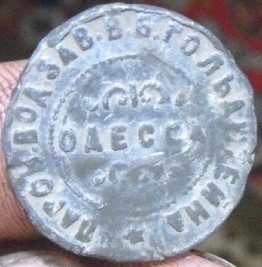Помогите определить что за предмет. метал вроде как свинец, с одной стороны написано "фирма существует съ 1872г" А с другой Одесса " паром.водзав. В.Б. Гольдштейна. отверстия для нитки как на пломбе вроде нет.