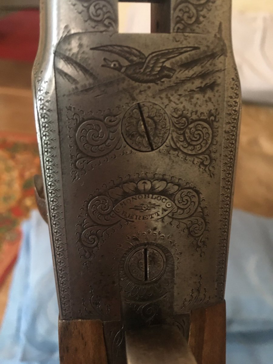 подушки стволов он знает где? без обид) только резкие фото, пожалуйста. и верхнее скрепление стволов - продолжение планки. там просто отверстие под болт Гринера, или есть еще паз?я на фото размытый паз вроде вижу... Крюк передний вроде проходит колодку насквозь? Крылышки на колодке отменили в 1948 г.