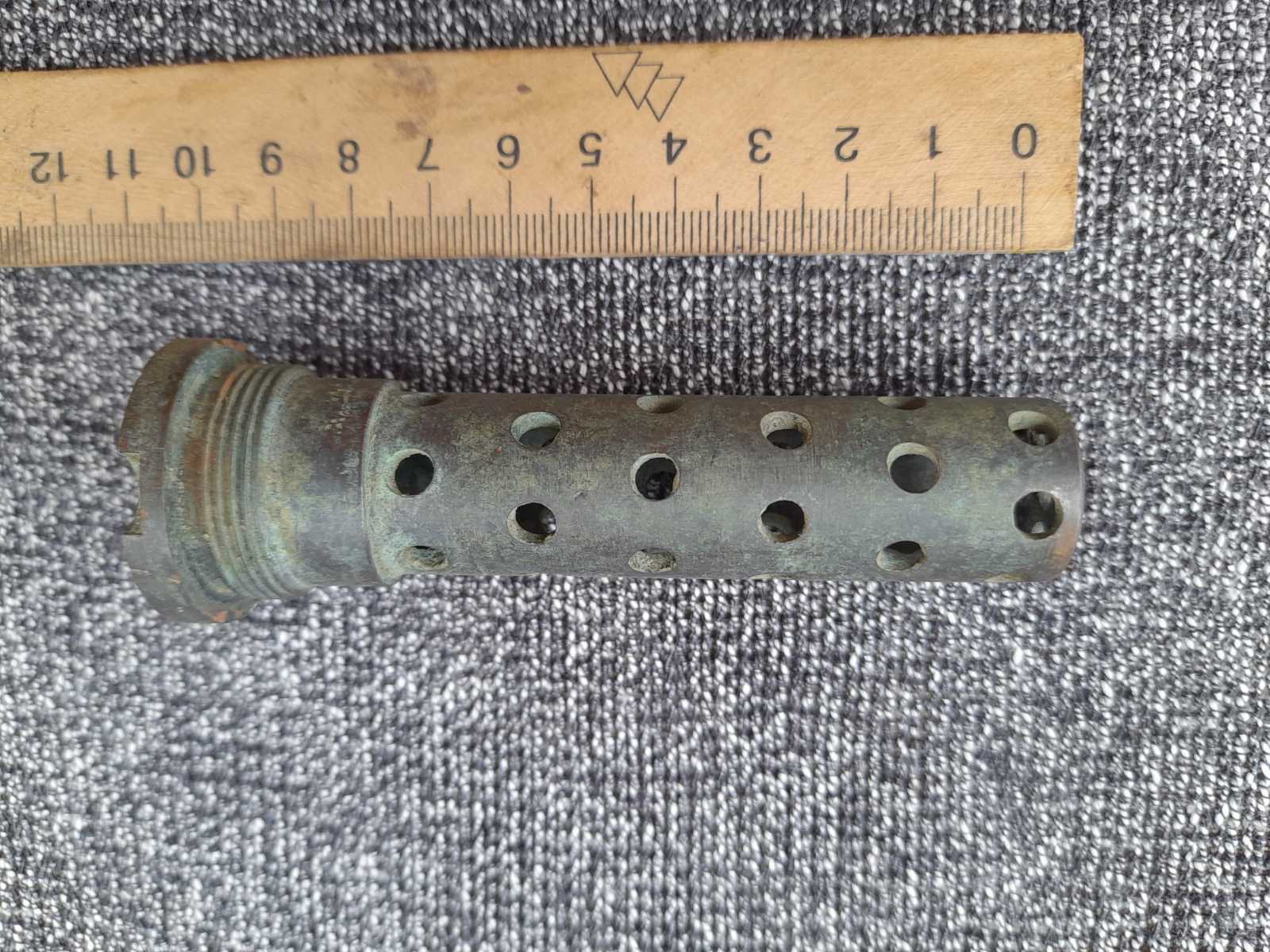 Доброго часу, Панове. Підкажіть, будь ласка, по знахідці.... я так розумію це ПТРД-шний девайс. На скільки він безпечний??? Яка там куля, мабудь, сказати важко. На верхній частині гільзи в районі обжиму залишки червоного лаку, на капсюлі лак чорний. Дякую знаючим.